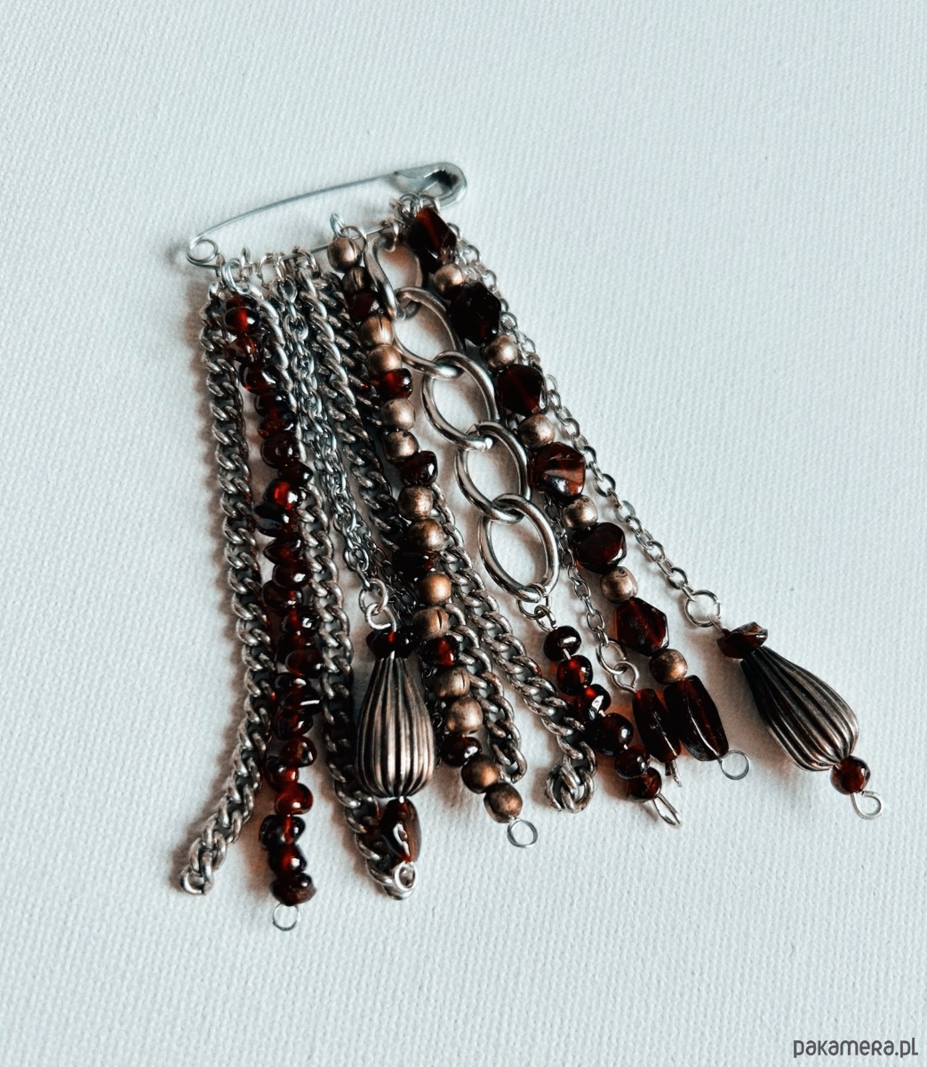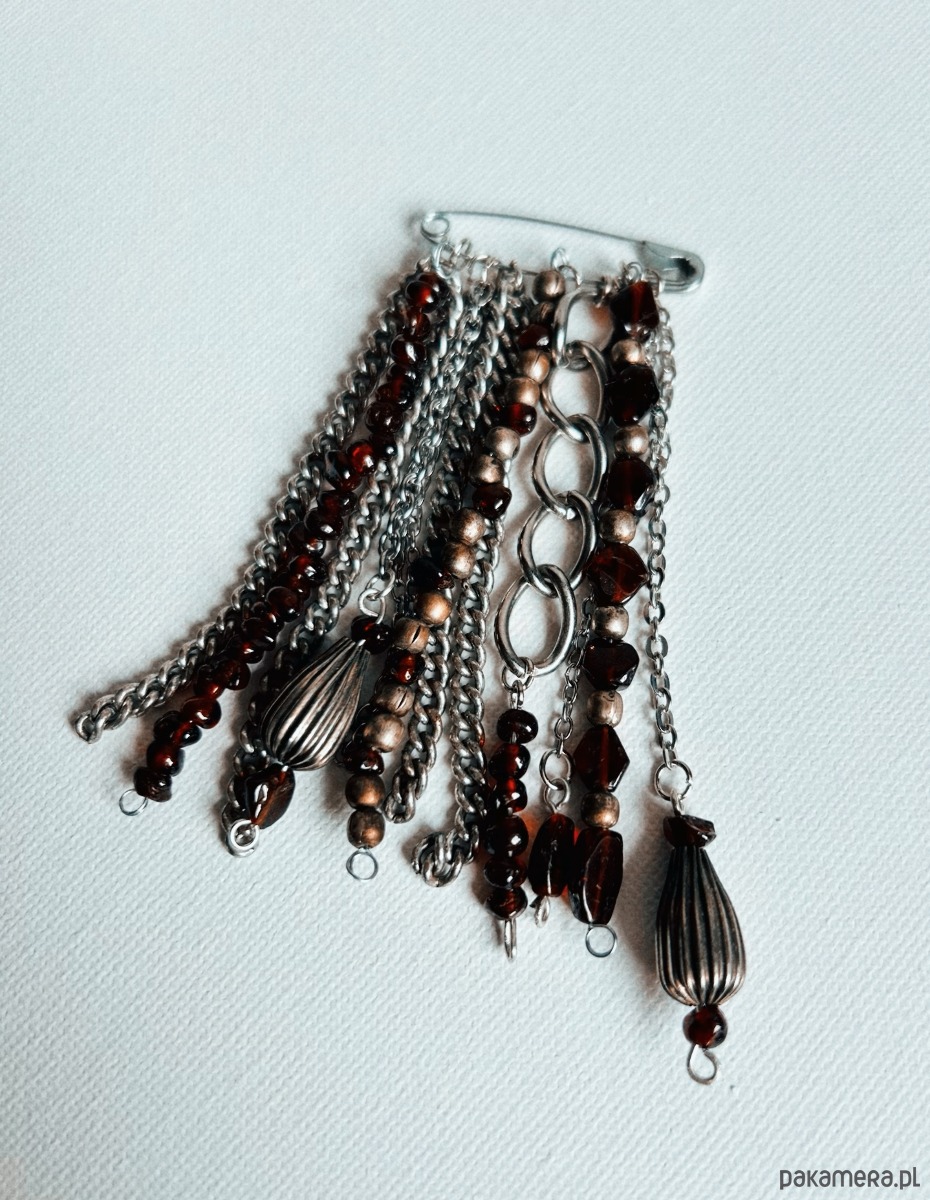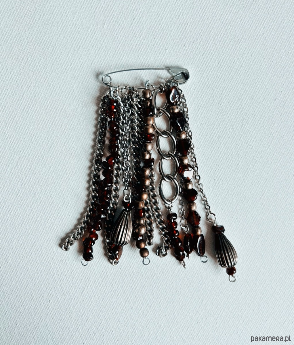 Broszka wykonana ręcznie na bazie klasycznej agrafki.