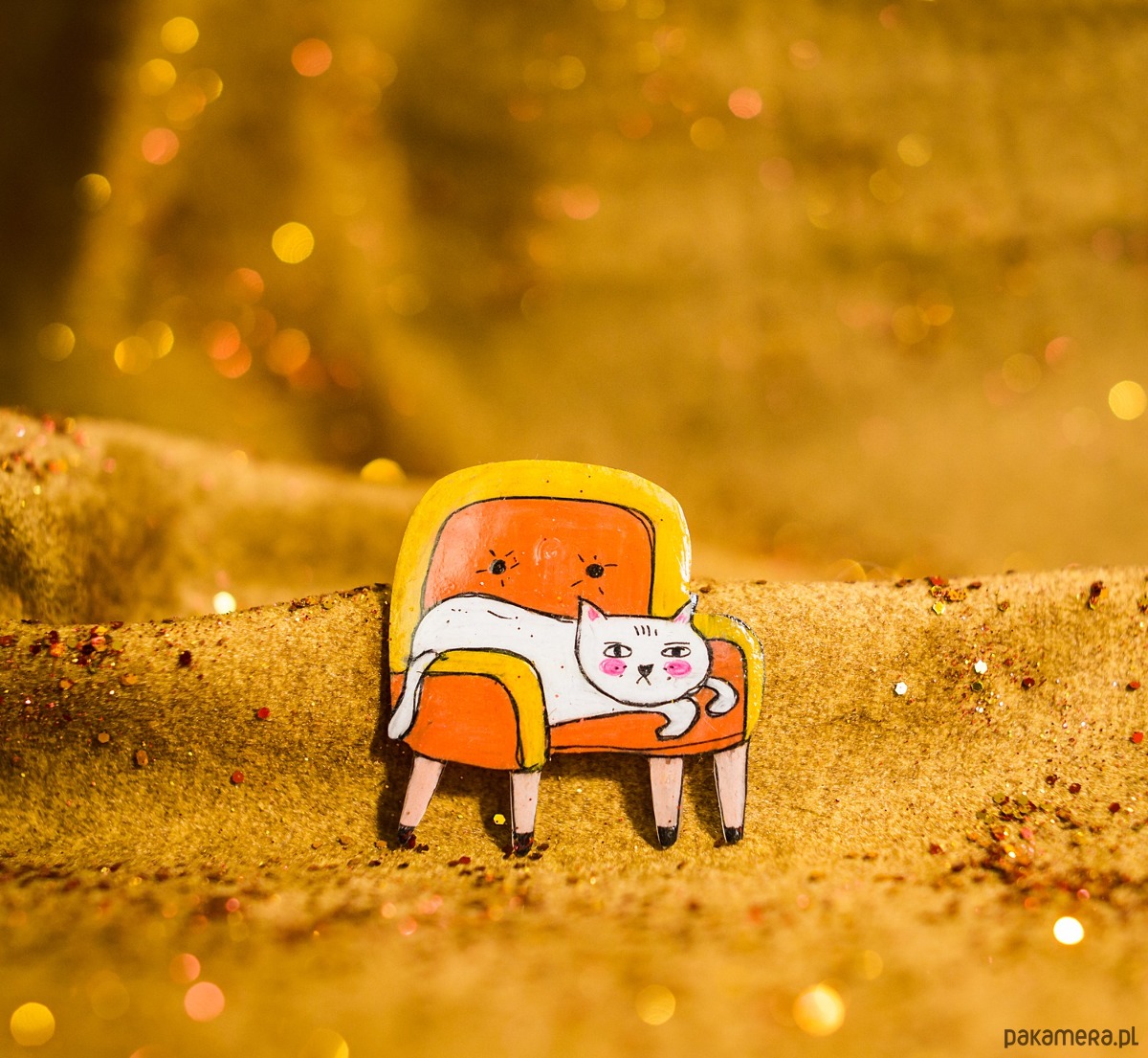Zabawna broszka z obrażonym kotem leżącym na fotelu to pełen humoru dodatek, który przyciąga wzrok i wywołuje uśmiech. Przedstawia kota w typowej, „fochowej” pozie, rozłożonego na swoim ulubionym fotelu – idealna propozycja dla miłośników kotów i lekkiego, żartobliwego stylu.