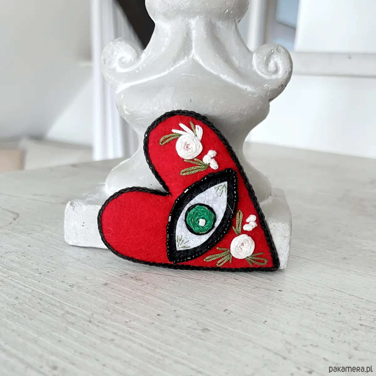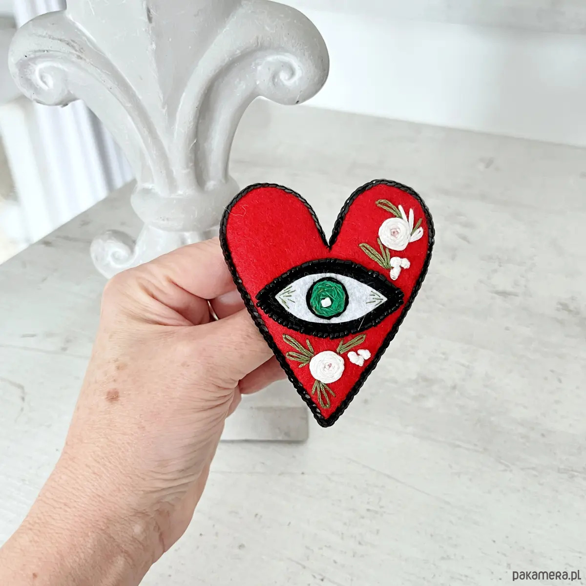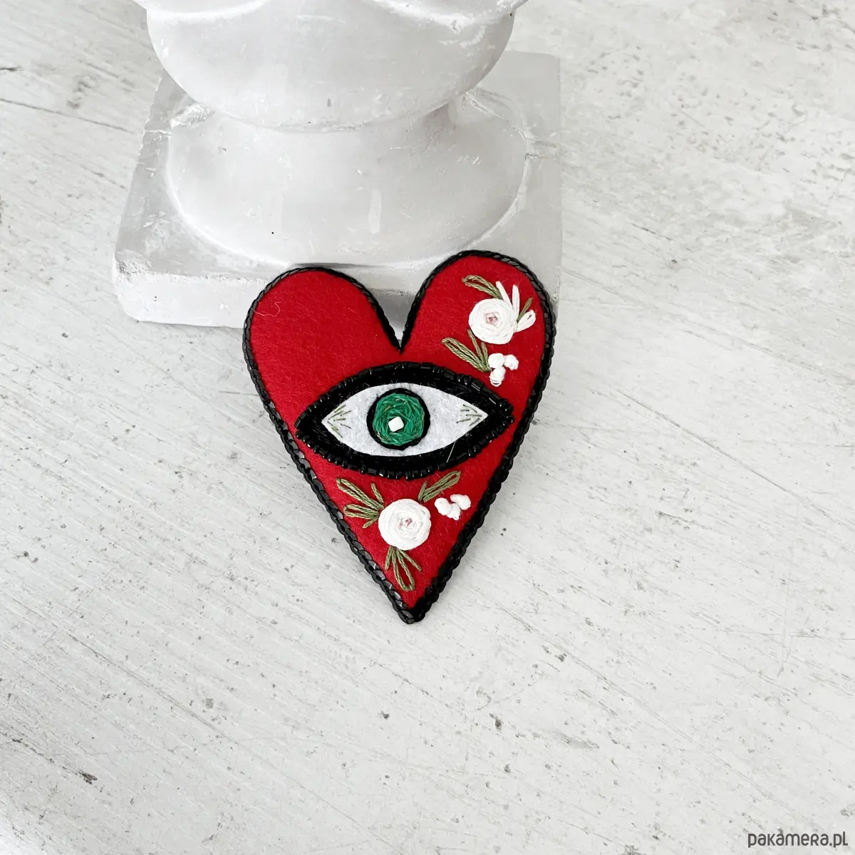Odkryj magię ręcznie haftowanej biżuterii z serii PATRZ SERCEM. Ta wyjątkowa broszka to połączenie dwóch symboli o głębokim znaczeniu: serca i oka. Serce od wieków jest znakiem miłości, wrażliwości i bliskości, a oko symbolizuje uważność, mądrość i wewnętrzne spojrzenie. Razem tworzą przesłanie: „Patrz sercem” – dostrzegaj więcej niż widać na pierwszy rzut oka.