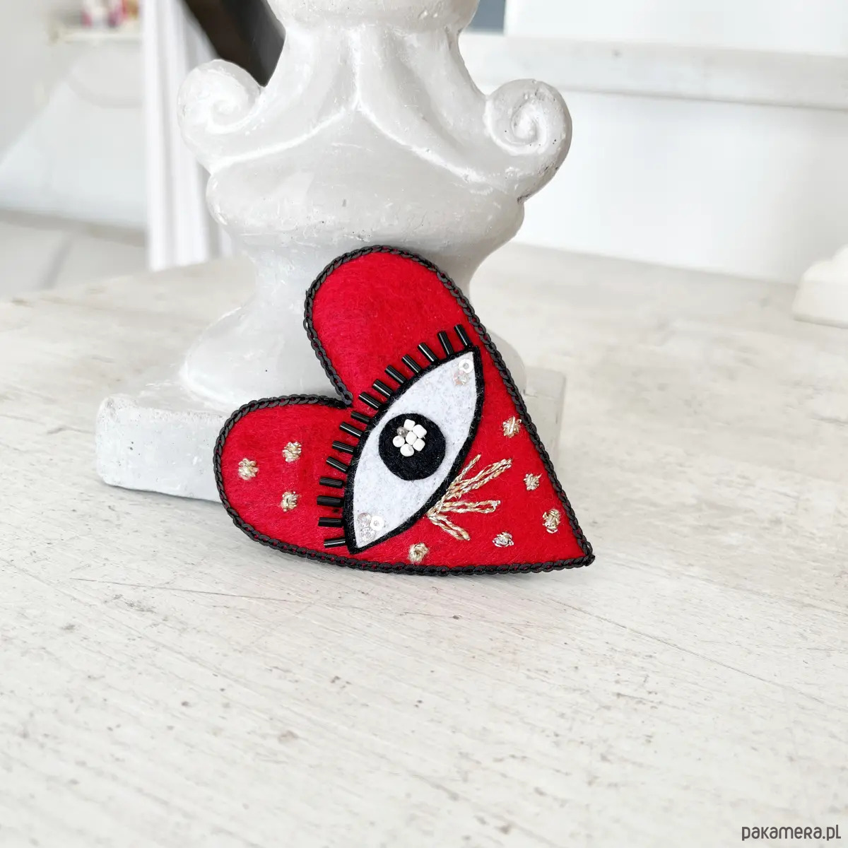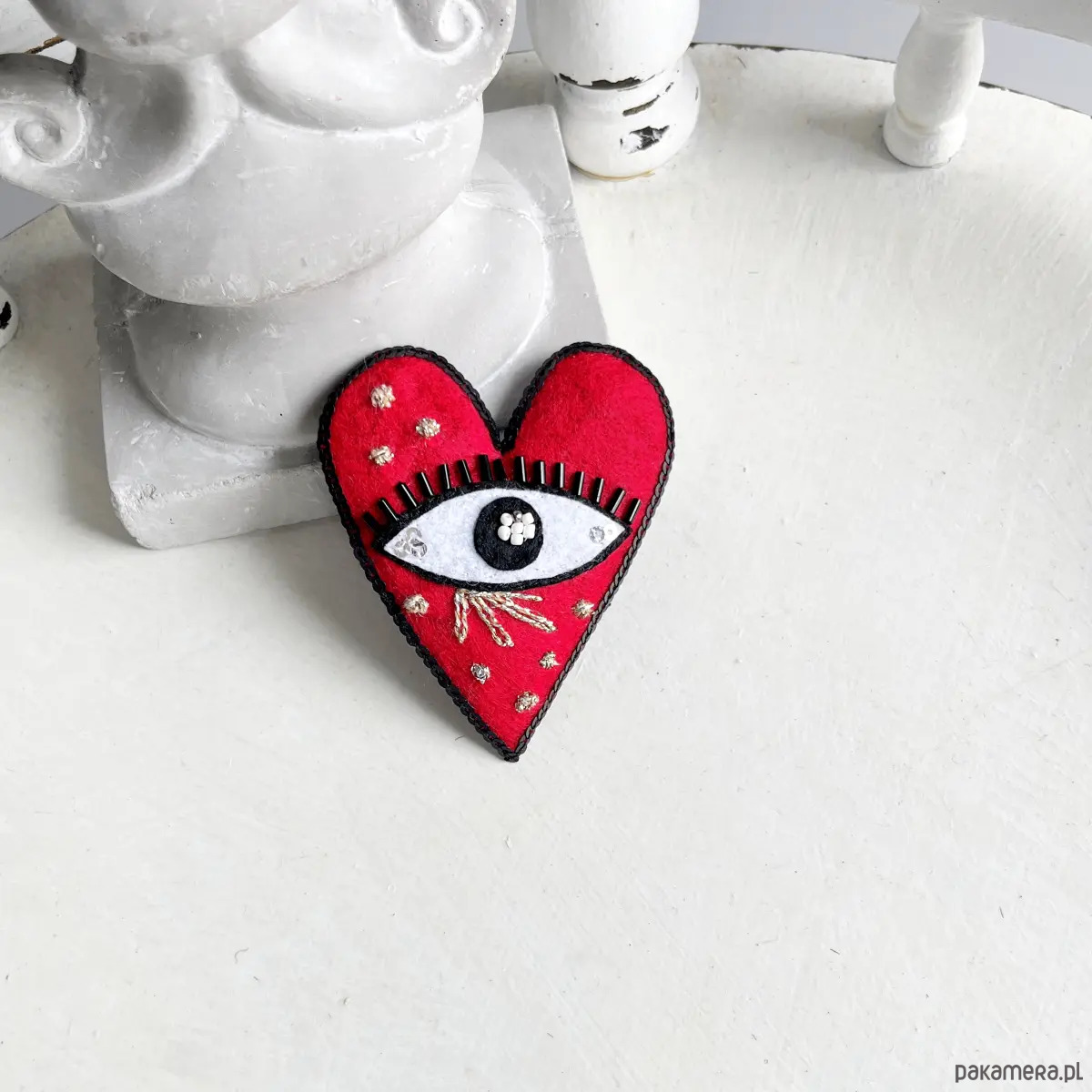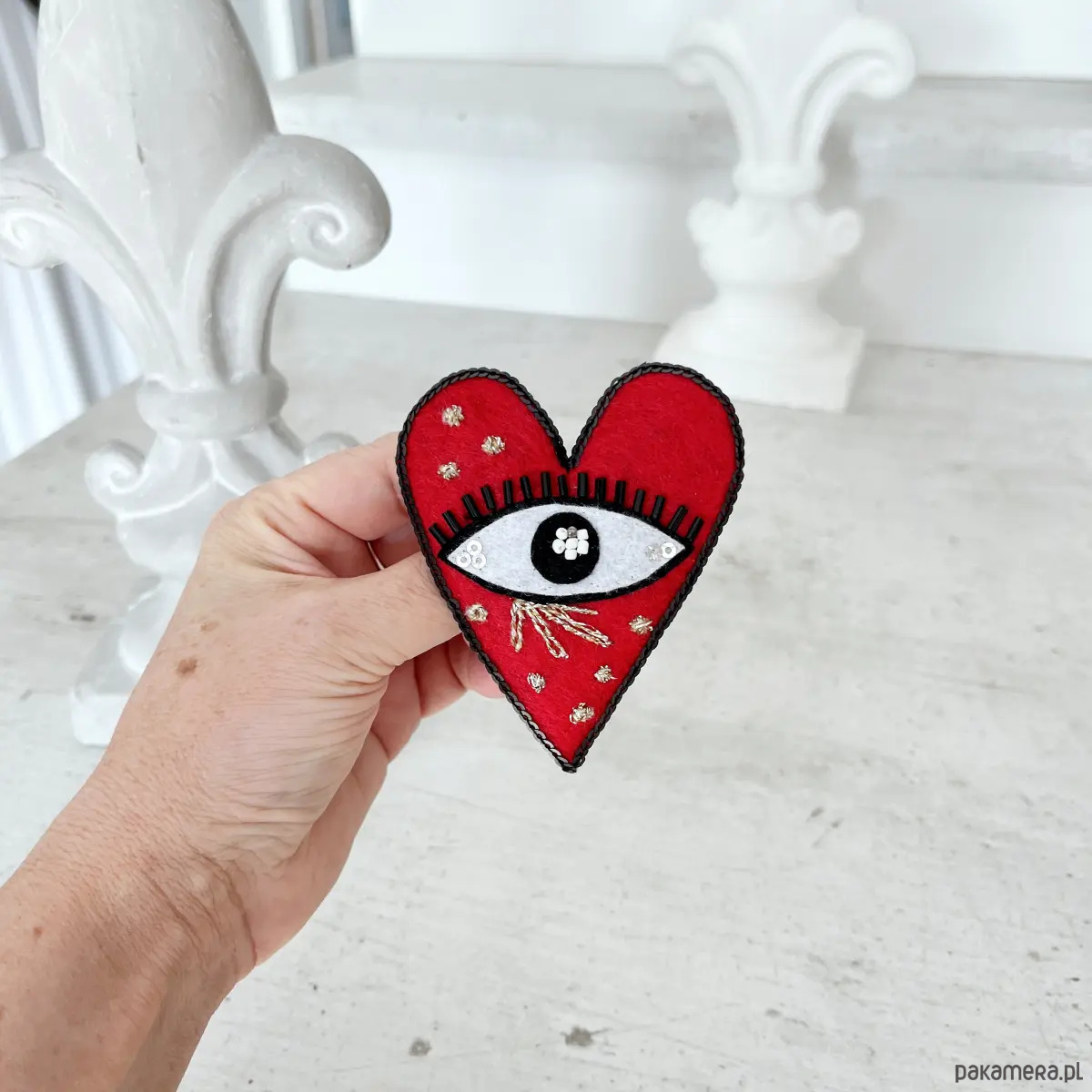 Odkryj magię ręcznie haftowanej biżuterii z serii PATRZ SERCEM. Ta wyjątkowa broszka to połączenie dwóch symboli o głębokim znaczeniu: serca i oka. Serce od wieków jest znakiem miłości, wrażliwości i bliskości, a oko symbolizuje uważność, mądrość i wewnętrzne spojrzenie. Razem tworzą przesłanie: „Patrz sercem” – dostrzegaj więcej niż widać na pierwszy rzut oka.