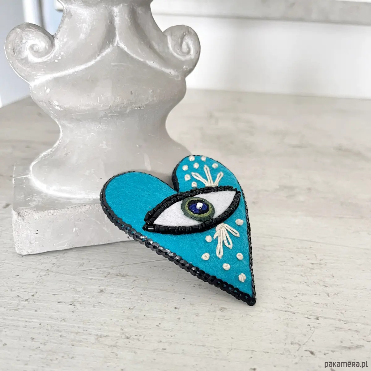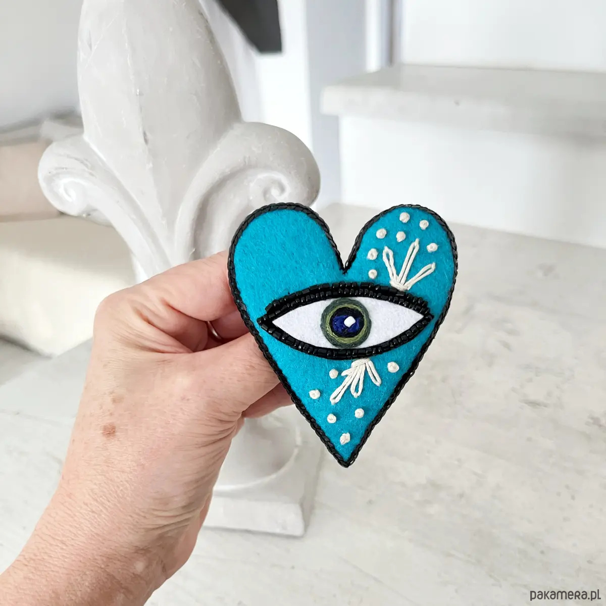 Odkryj magię ręcznie haftowanej biżuterii z serii PATRZ SERCEM. Ta wyjątkowa broszka to połączenie dwóch symboli o głębokim znaczeniu: serca i oka. Serce od wieków jest znakiem miłości, wrażliwości i bliskości, a oko symbolizuje uważność, mądrość i wewnętrzne spojrzenie. Razem tworzą przesłanie: „Patrz sercem” – dostrzegaj więcej niż widać na pierwszy rzut oka.