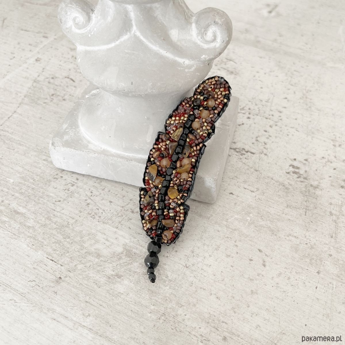 Przedstawiam wyjątkową, ręcznie haftowaną broszkę z serii PIÓRKO.