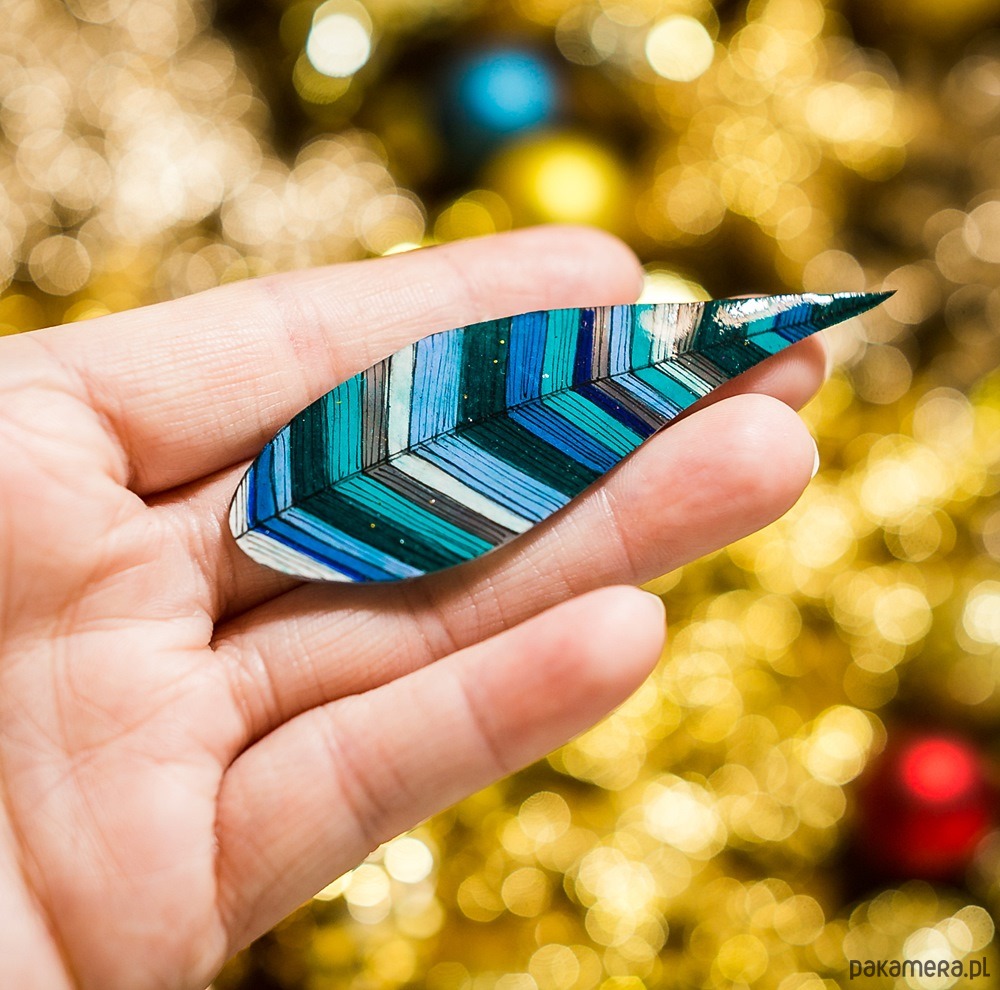 Broszka została ręcznie narysowana i zabezpieczona lakierem ekologicznym.