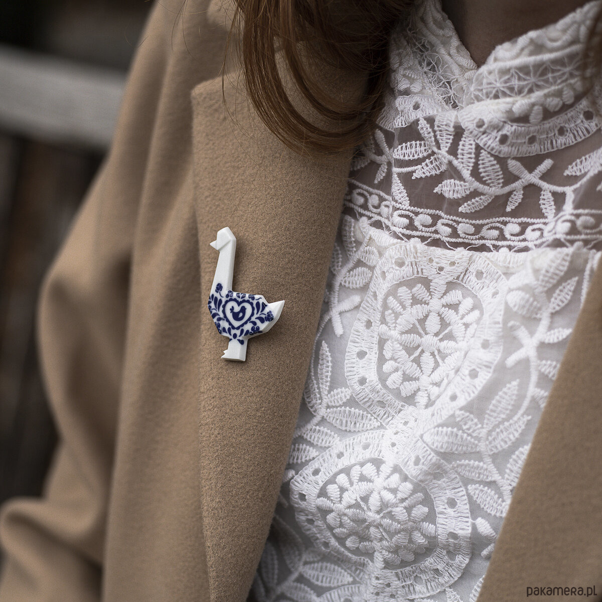 Porcelanowa broszka w kształcie Kaczki to ręcznie robiona biżuteria z nowej kolekcji Folklor.