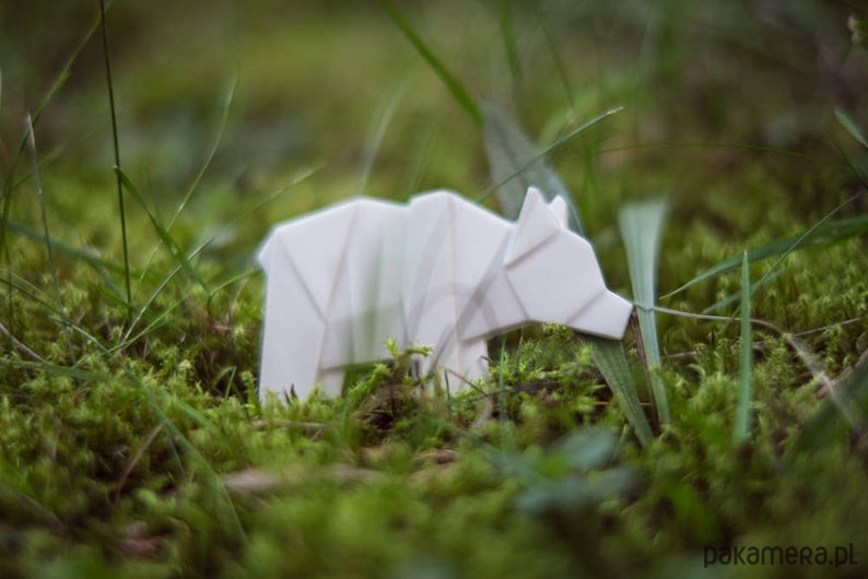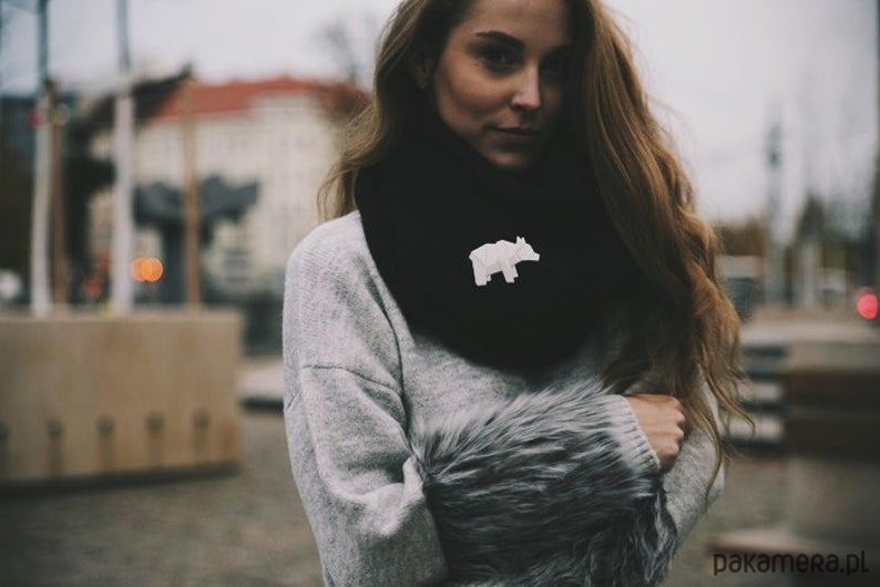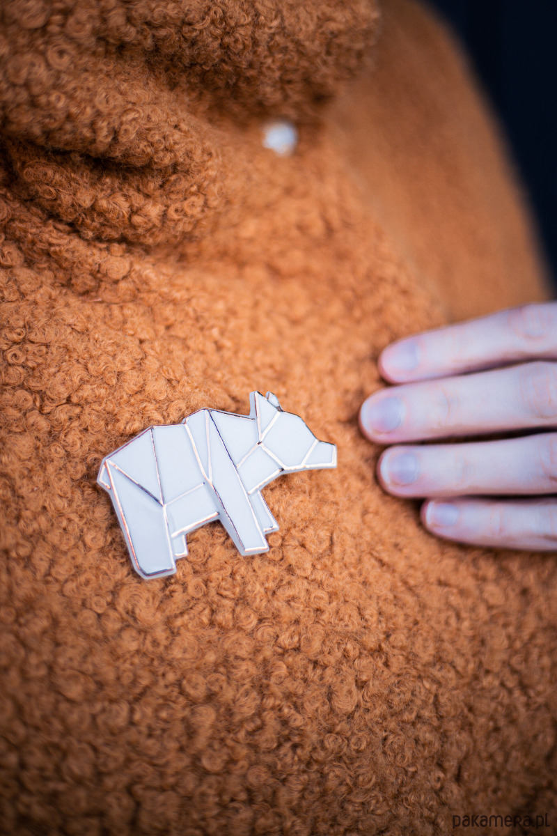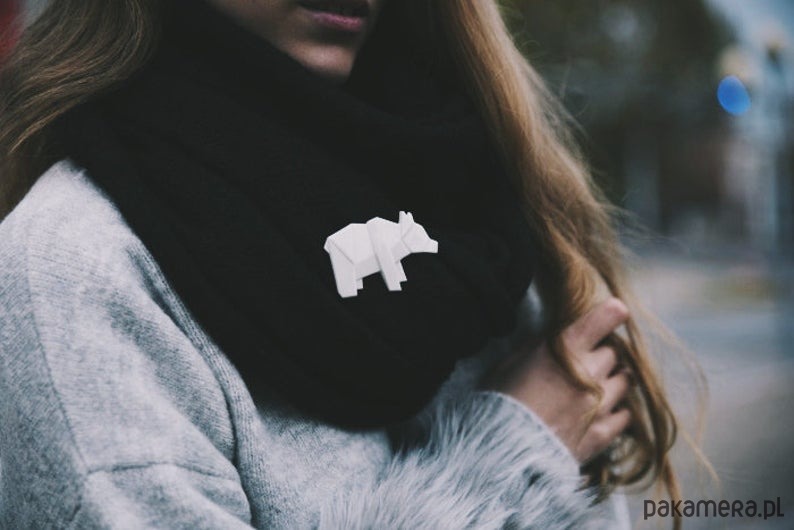 Porcelanowa broszka w kształcie niedźwiedzia to ręcznie robiona biżuteria inspirowana tradycyjną japońską sztuką Origami.