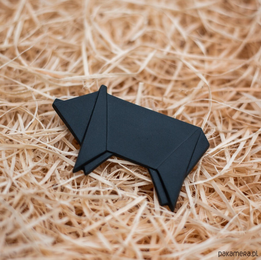 Broszka Porcelanowa Origami Świnka Czarna