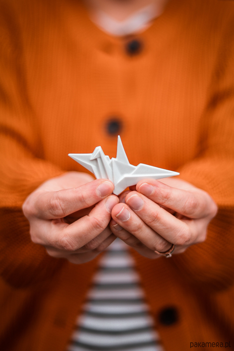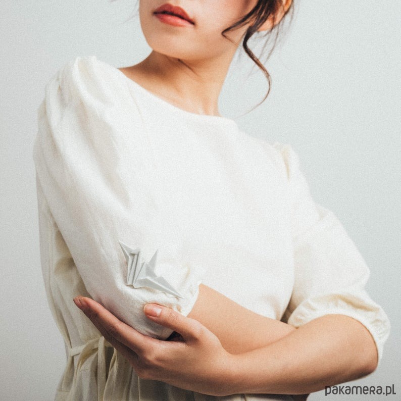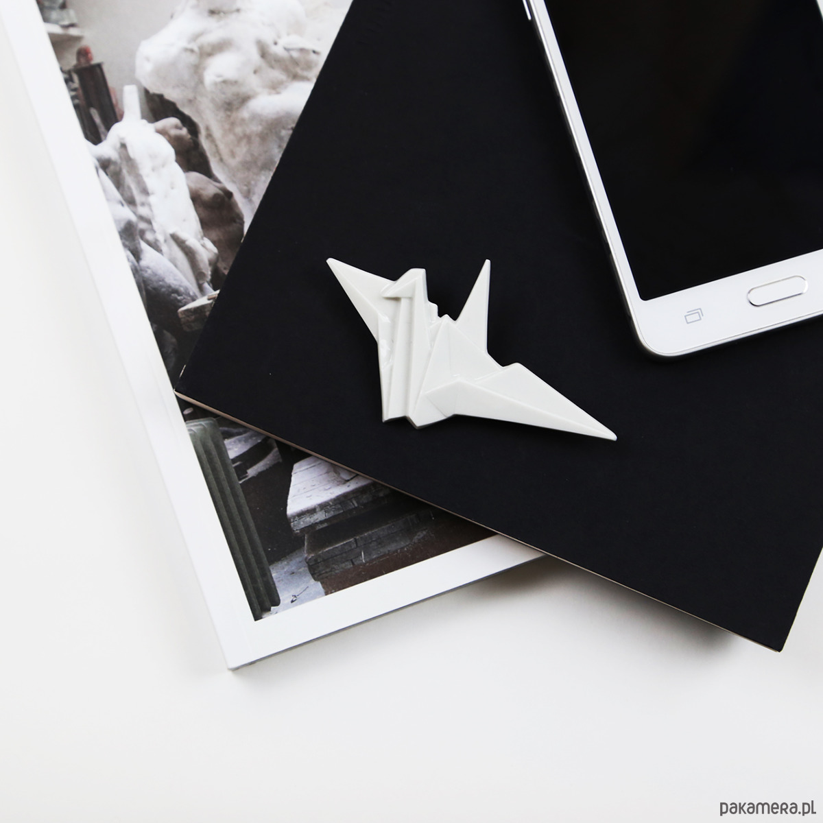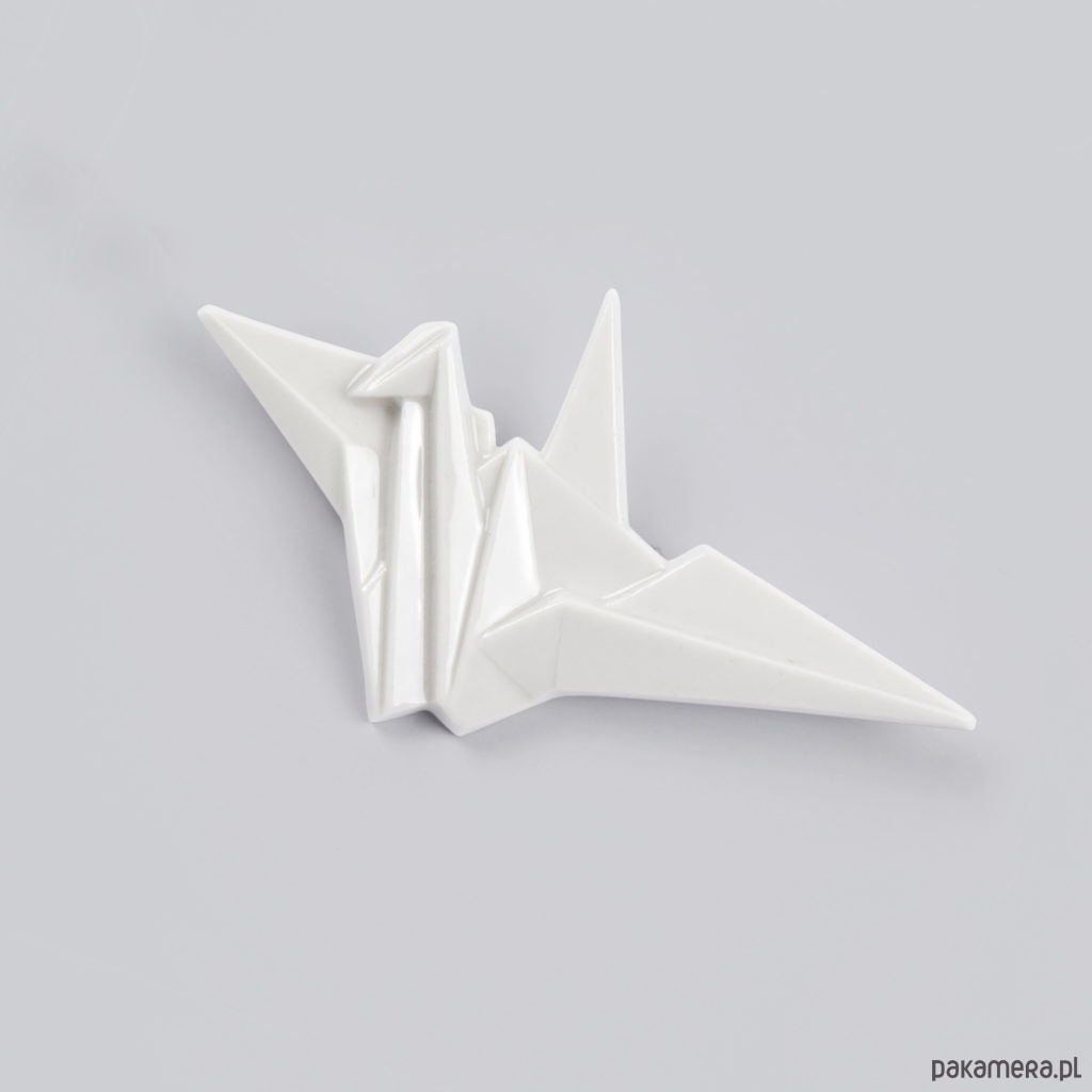 Porcelanowa broszka w kształcie żurawia to ręcznie robiona biżuteria inspirowana tradycyjną japońską sztuką Origami.