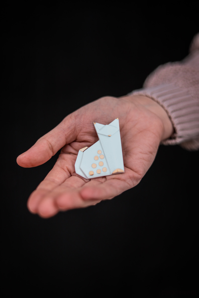 Porcelanowa broszka w kształcie kota to ręcznie robiona biżuteria inspirowana tradycyjną japońską sztuką Origami.
