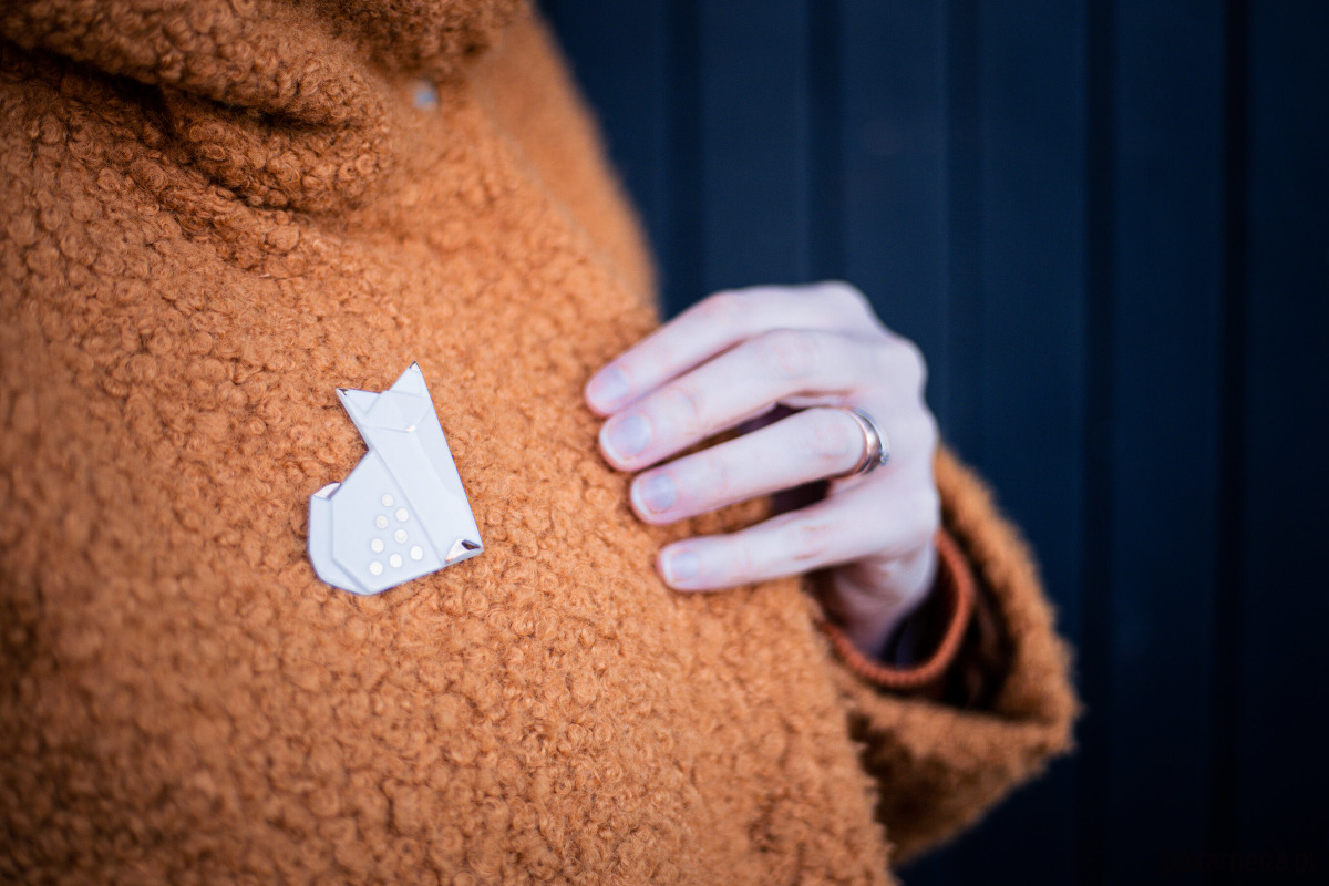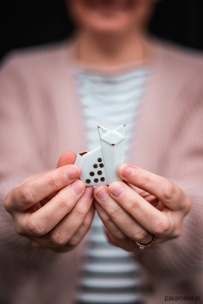 Porcelanowa broszka w kształcie kota to ręcznie robiona biżuteria inspirowana tradycyjną japońską sztuką Origami.