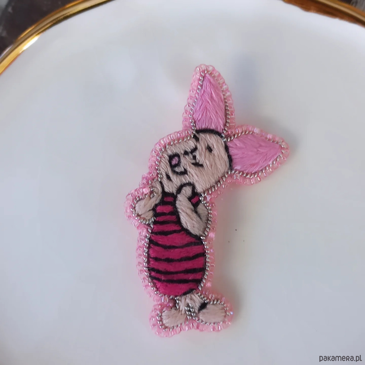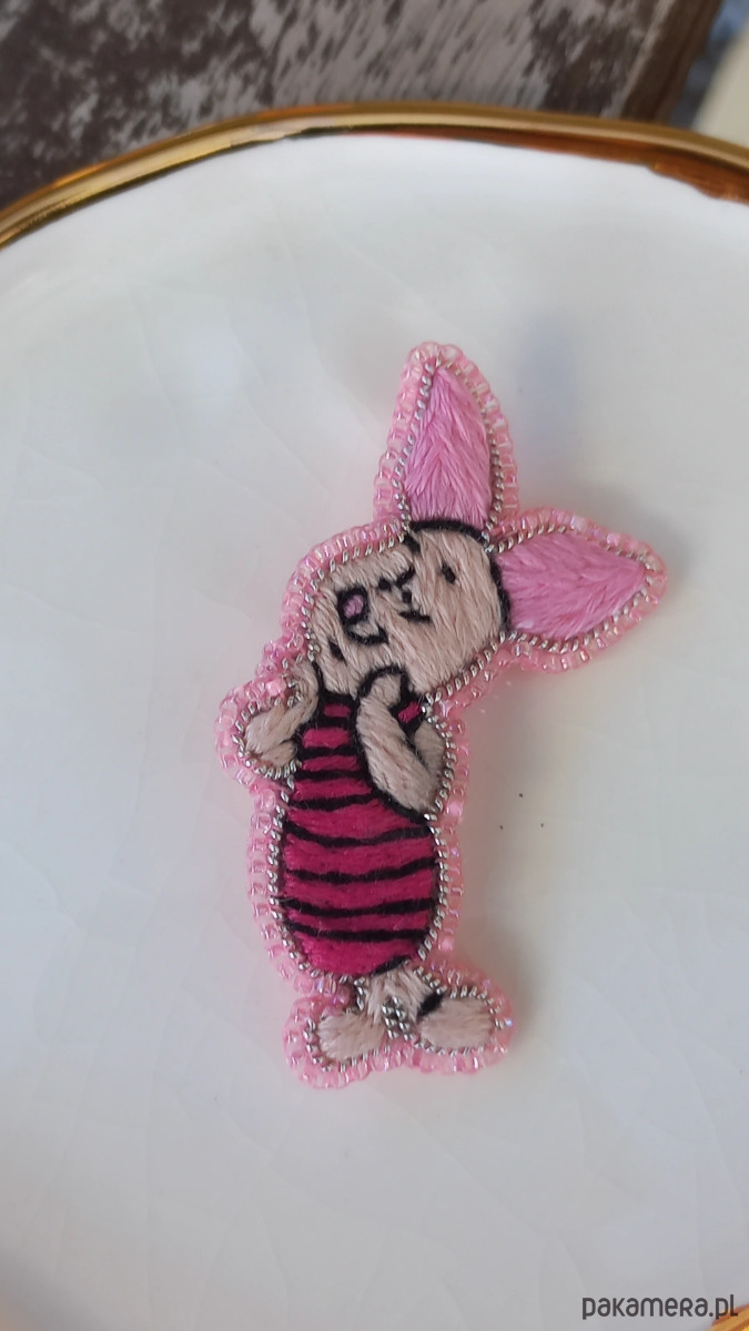 Niepowtarzalna, ręcznie szyta broszka, wykonana metodą haftu koralikowego i haftu ręcznego. Każdy koralik wyszywany jest pojedynczo, dzięki czemu ozdoba jest unikatowa i wyjątkowa. Broszka ma wielkość około 5,5 cm długości i około 2 cm szerokości, wykończenia stalowe w kolorze srebrnym, zapięcie typu agrafka. Od spodu podszyta jest filcem.