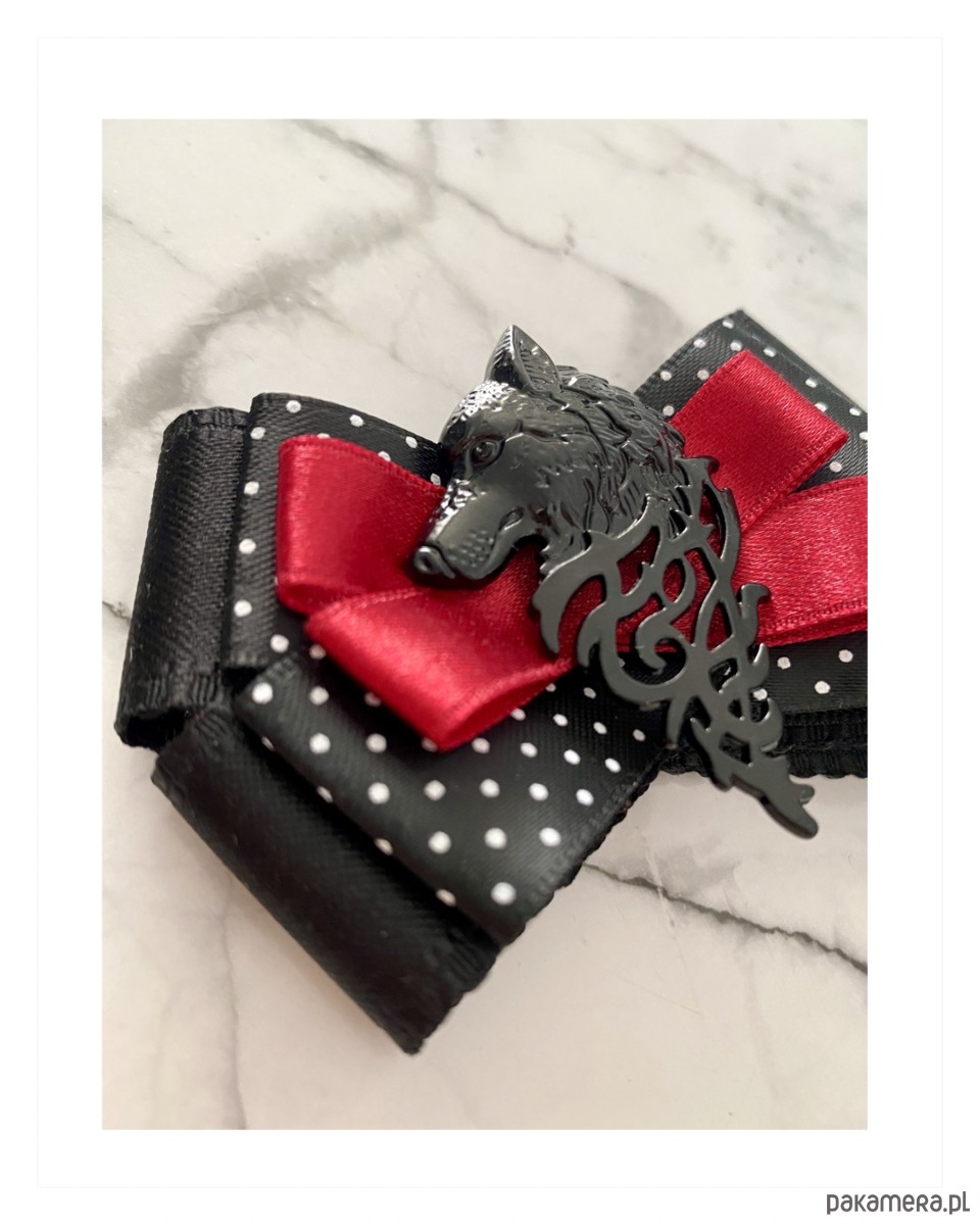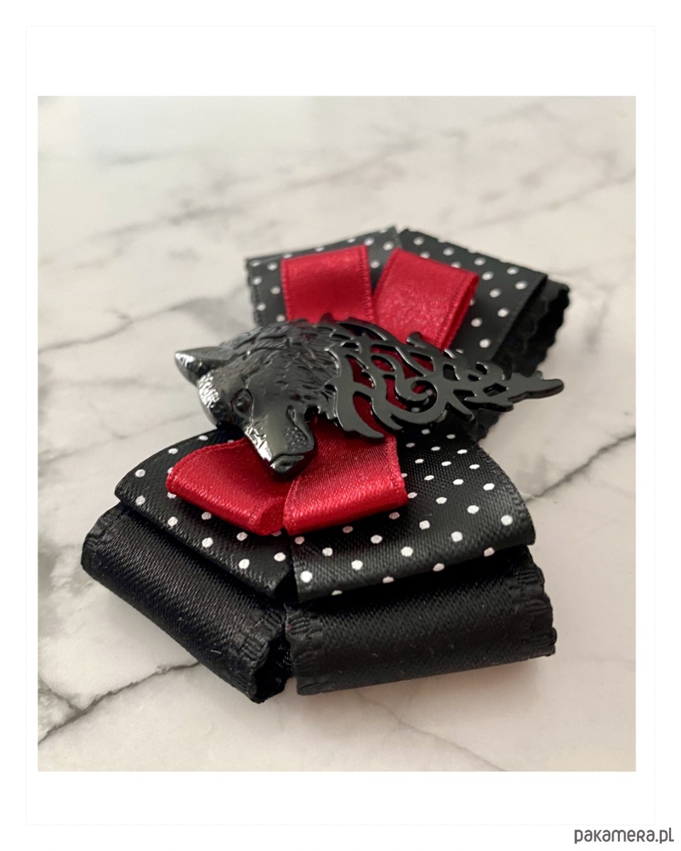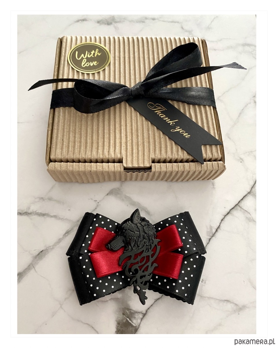Broszka wykonana z wysokiej jakości taśm i dodatków.