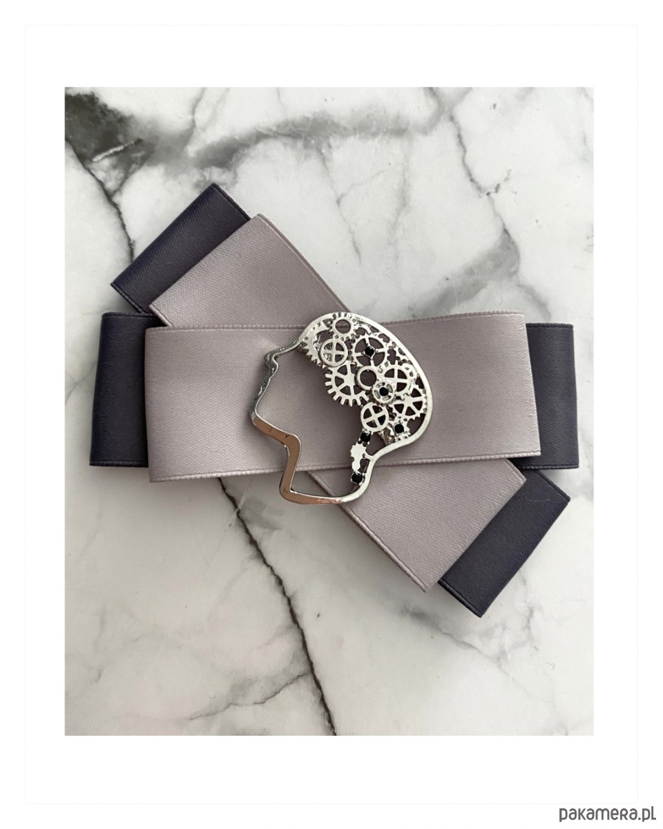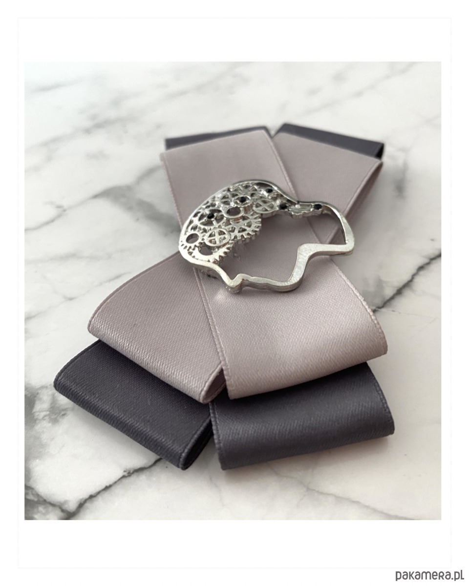 Broszka wykonana z wysokiej jakości taśm i dodatków.