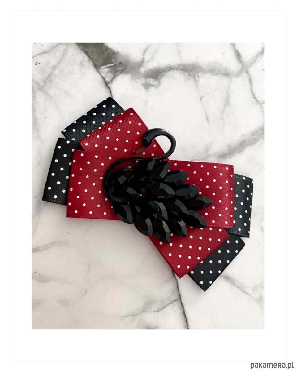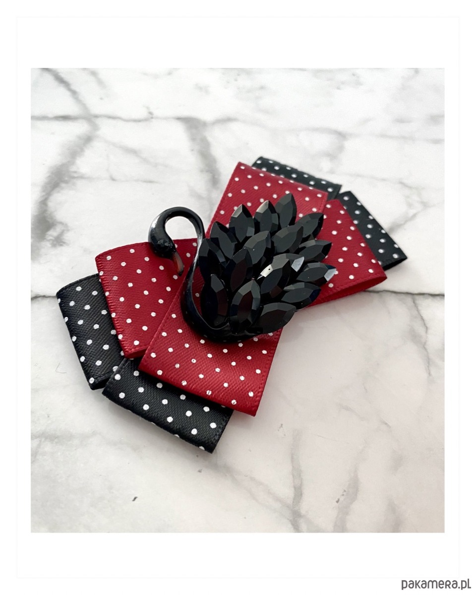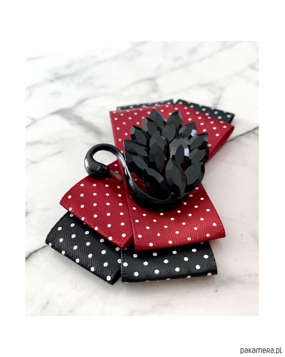 Broszka wykonana z wysokiej jakości taśm i dodatków.