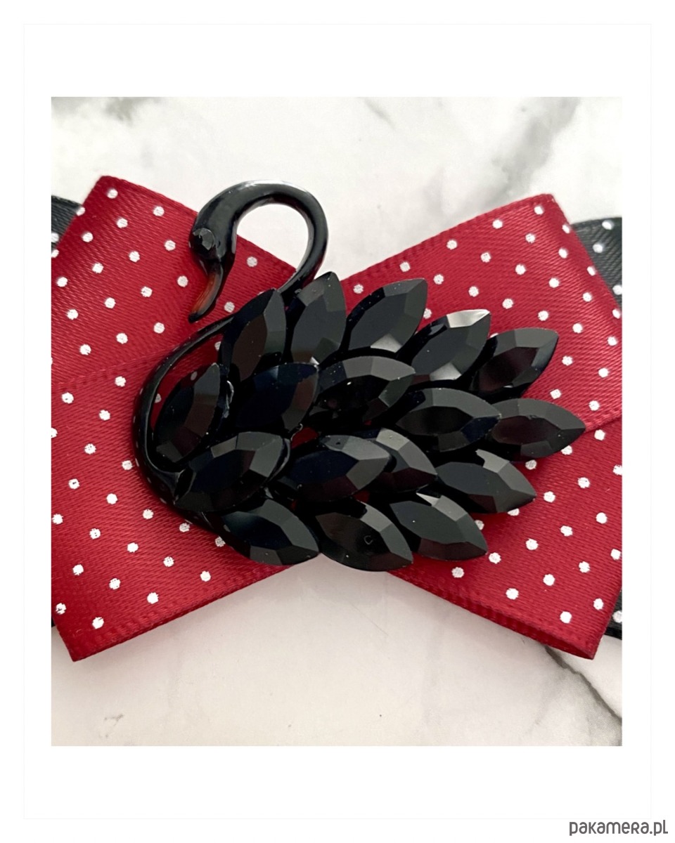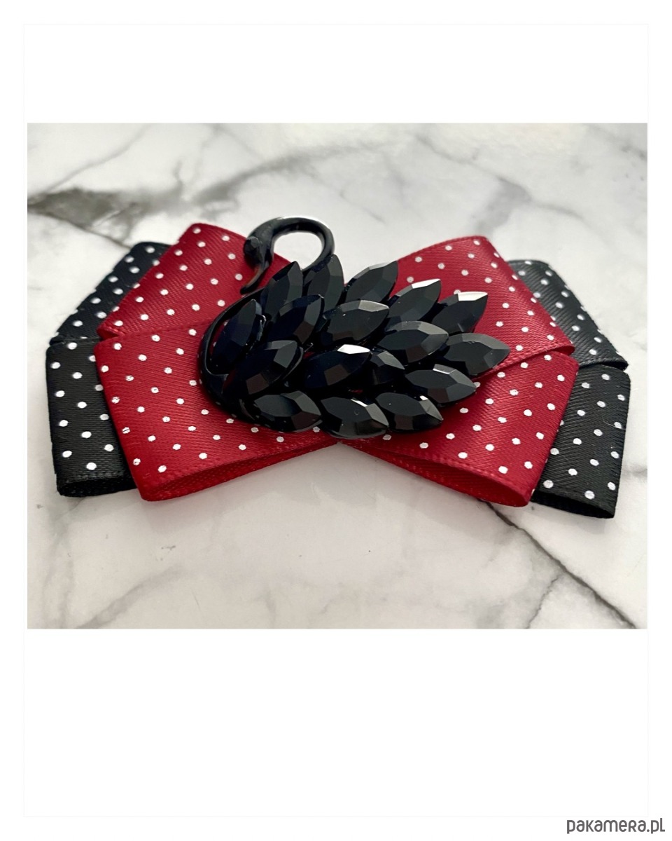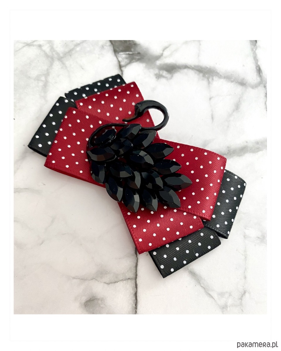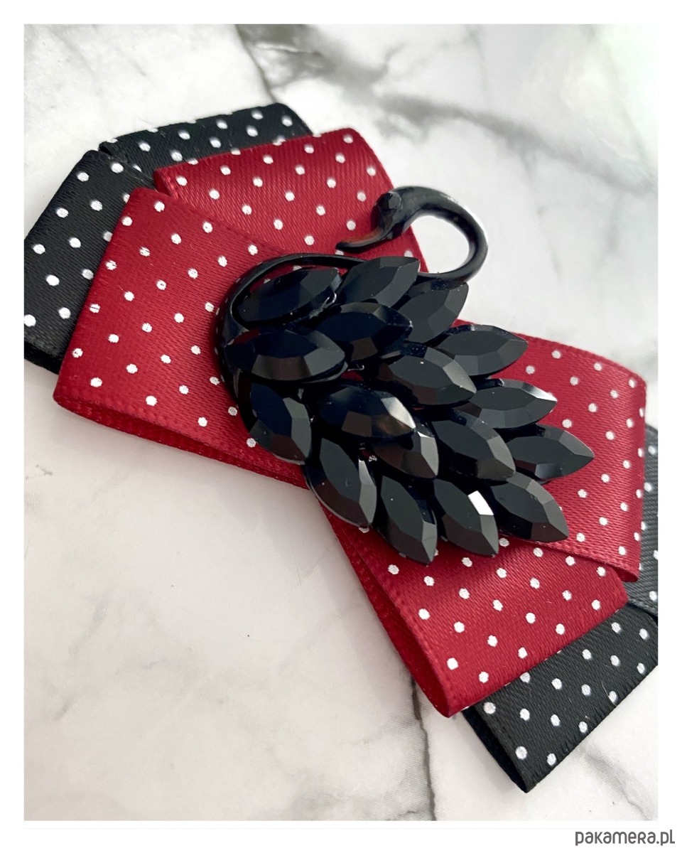 Broszka wykonana z wysokiej jakości taśm i dodatków.