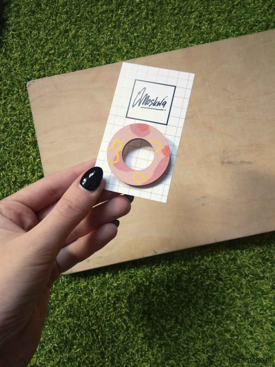 Drewniana minimalistyczna przypinka w kształcie koła. Ręcznie malowana.