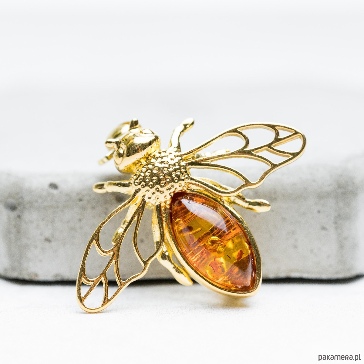 Broszka pszczoła z bursztynem bałtyckim srebro 925 Broszka bursztynowa