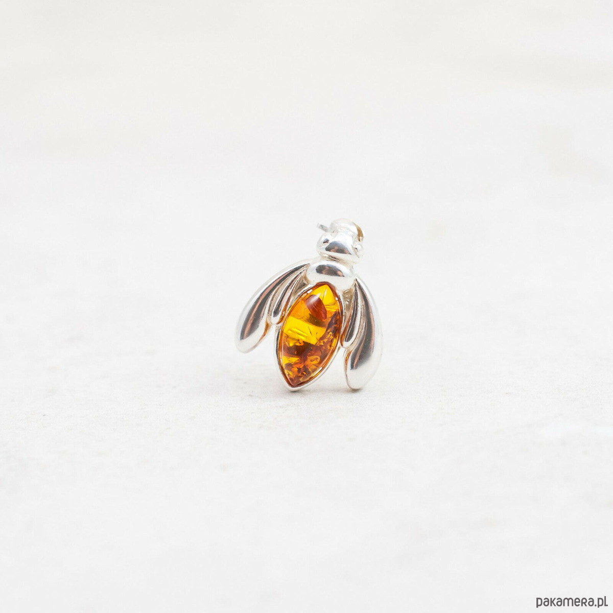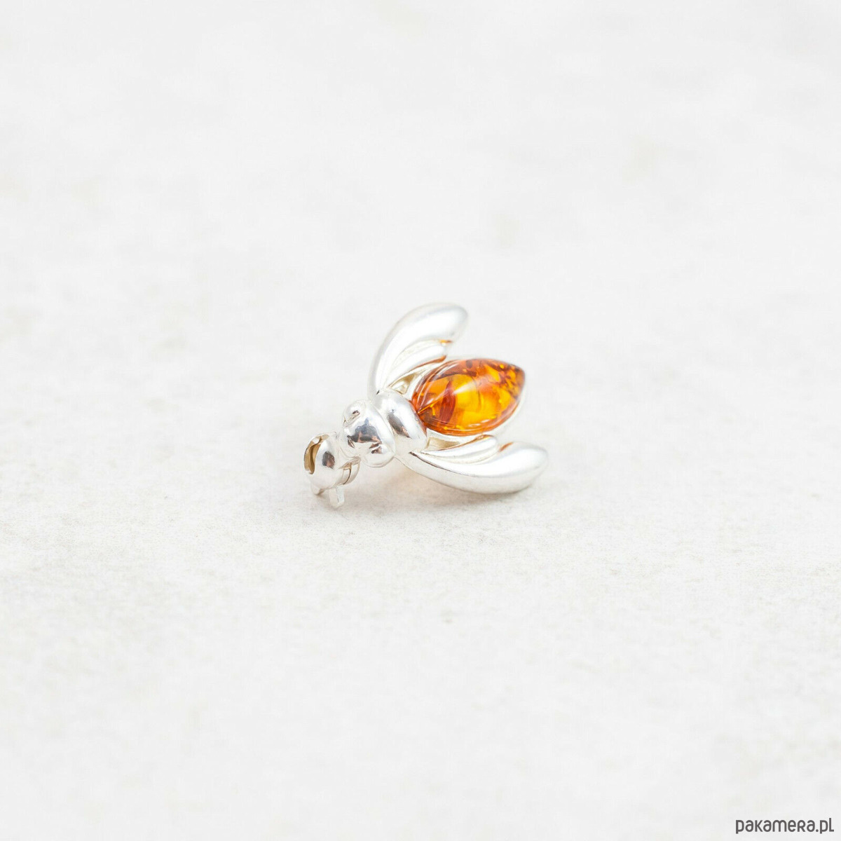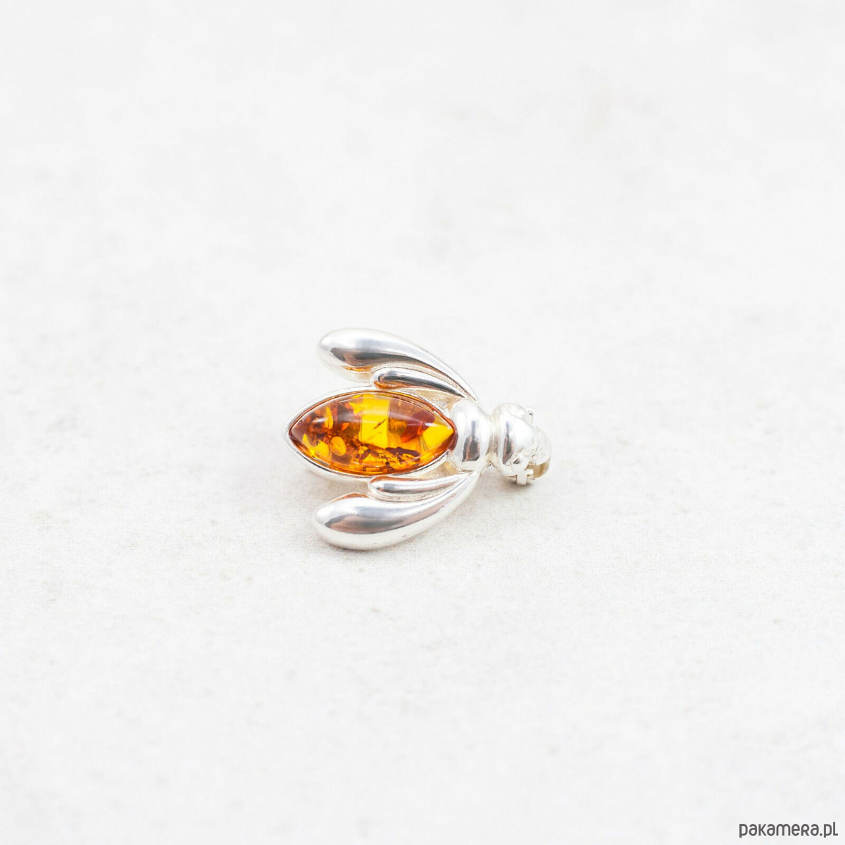 Broszka bursztynowa pszczoła srebro 925