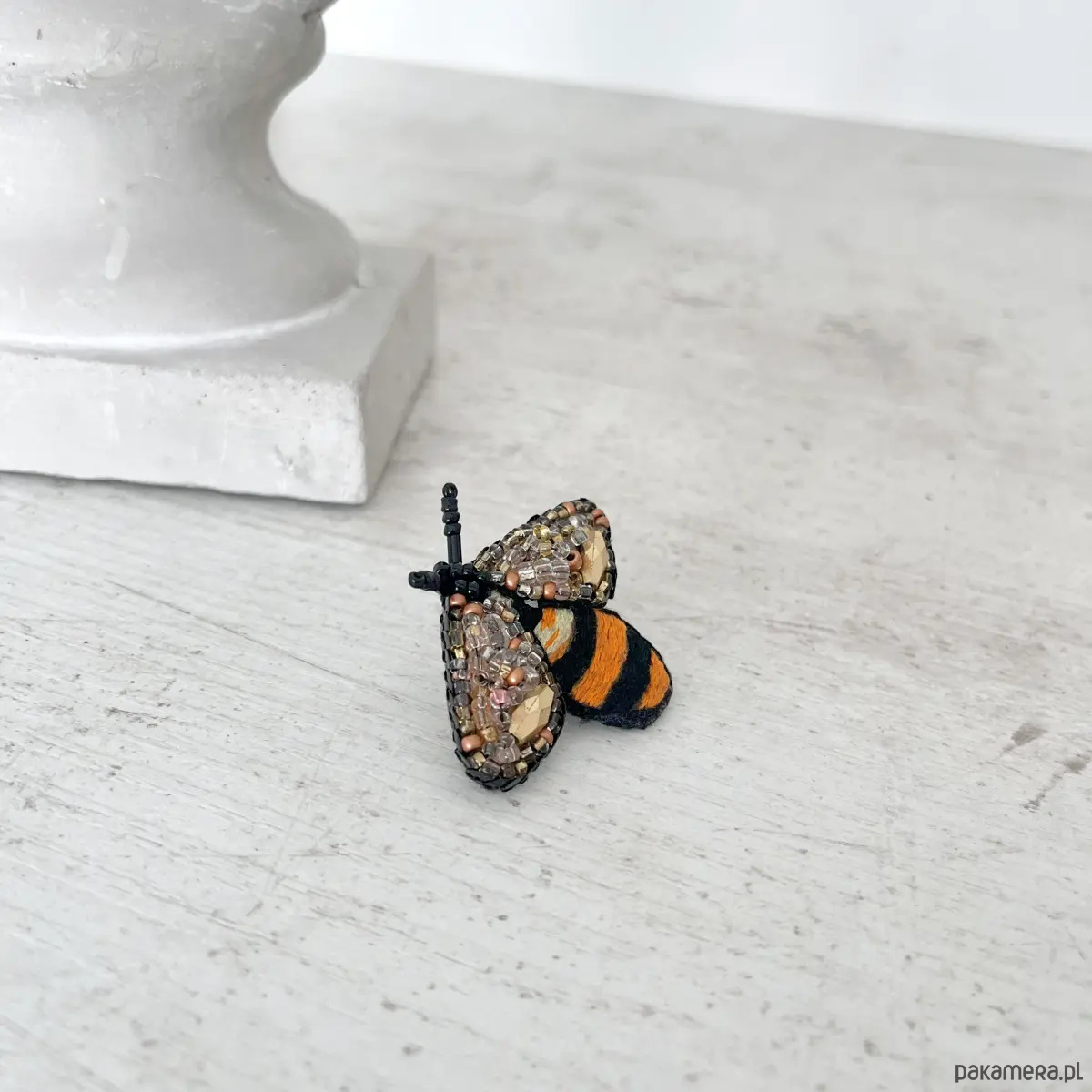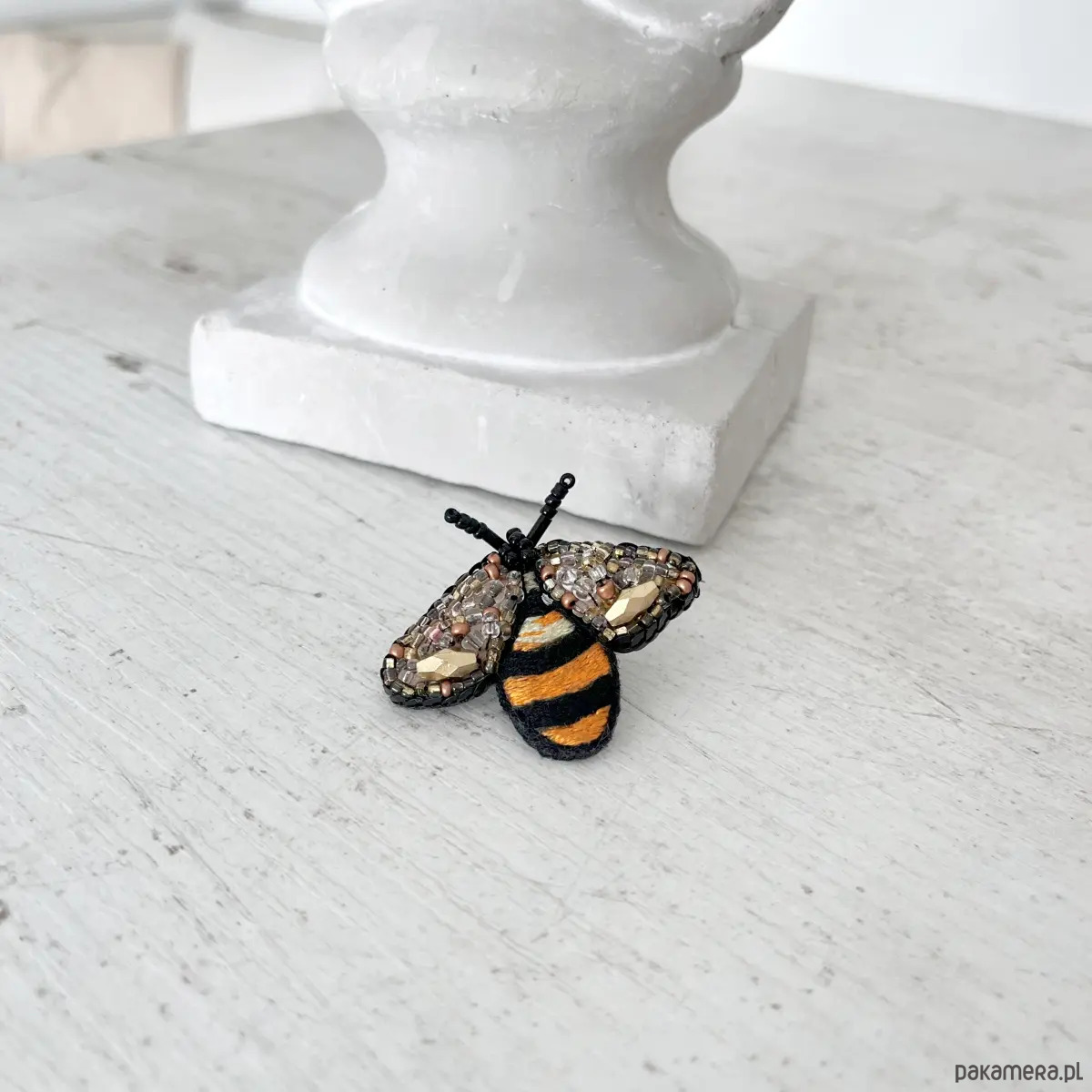 Przedstawiam wyjątkową, ręcznie haftowaną broszkę z serii PSZCZÓŁKA.