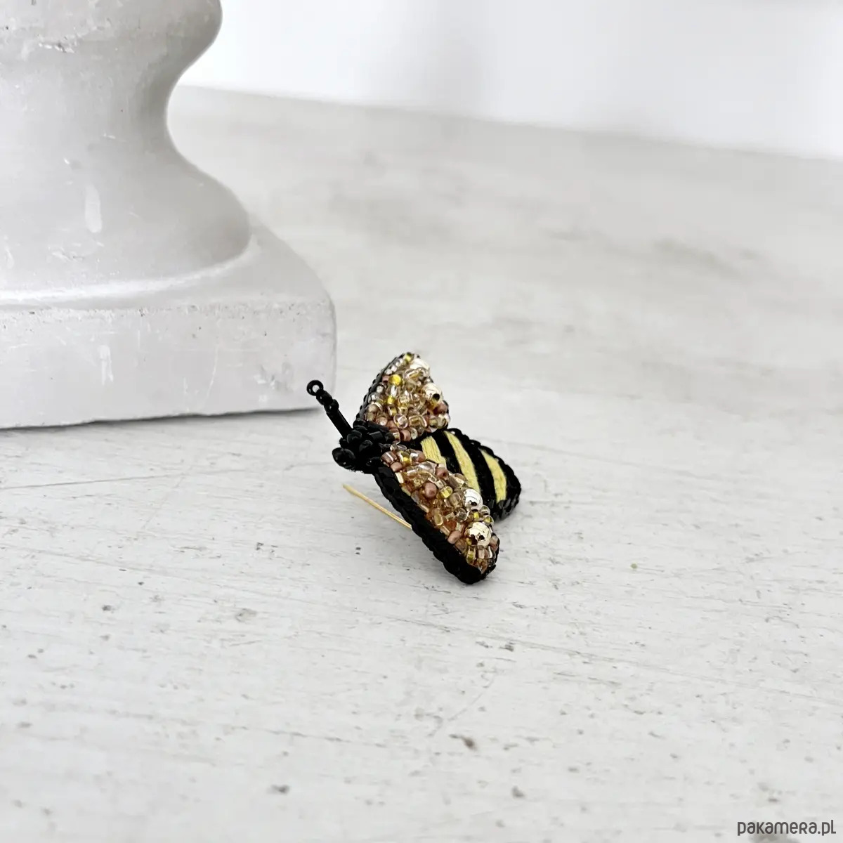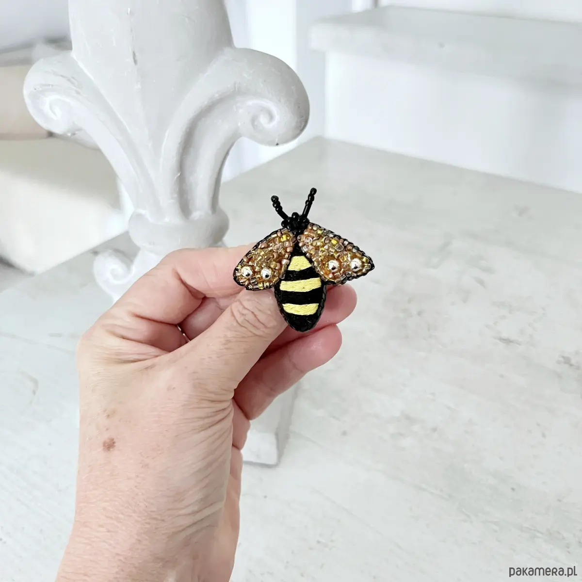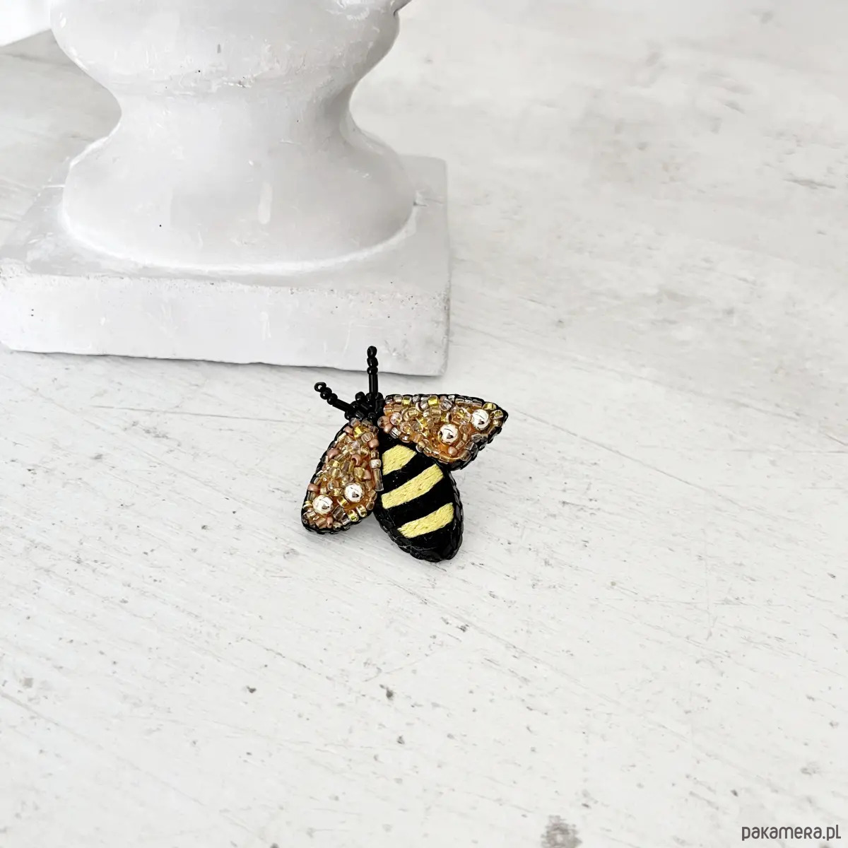 Broszka PSZCZÓŁKA 5 ręcznie haftowana przypinka owady koraliki