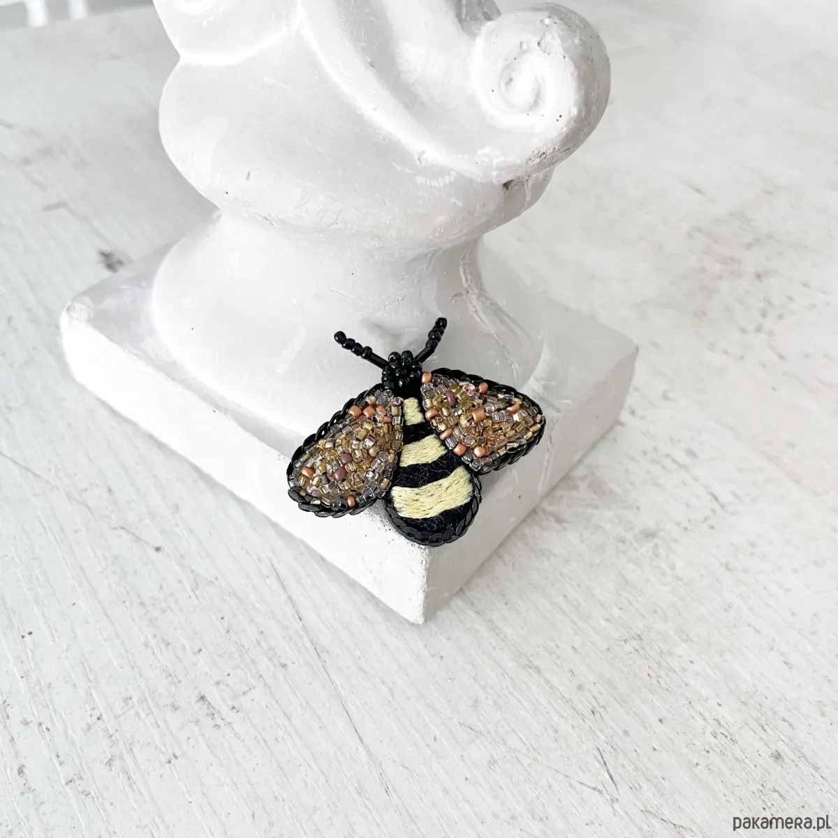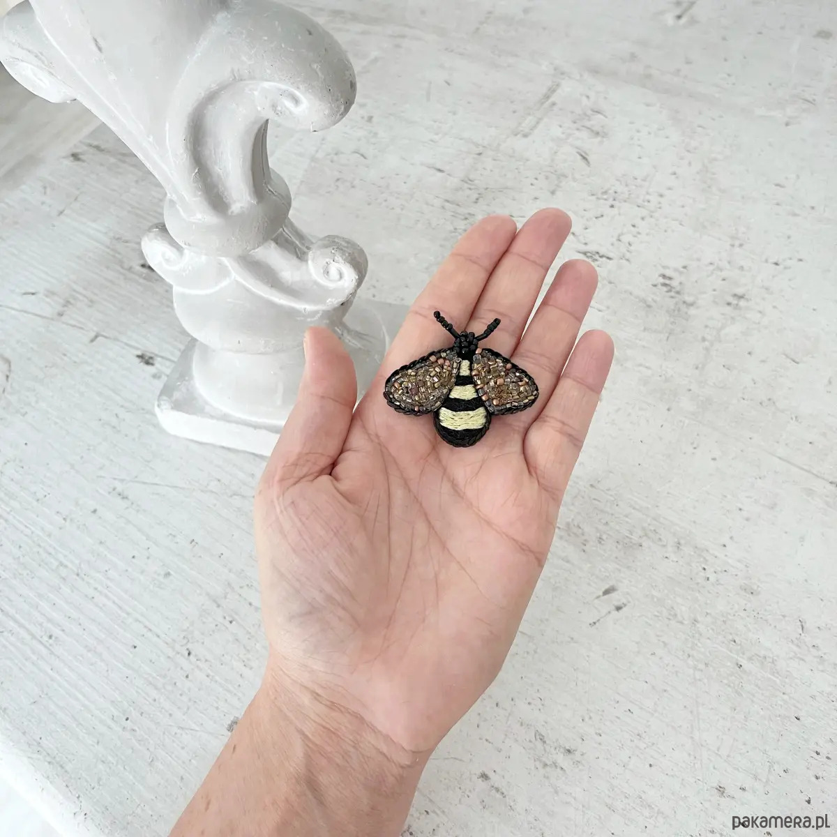 Przedstawiam wyjątkową, ręcznie haftowaną broszkę z serii PSZCZÓŁKA.