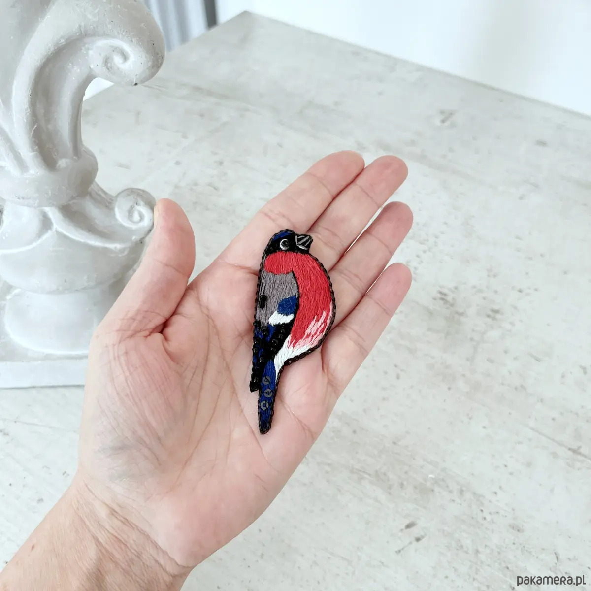 Gil to jeden z najbardziej rozpoznawalnych ptaków w Polsce. Jego czerwony brzuszek widać nawet w najbardziej pochmurne dni. Broszka GIL została wykonana ręcznie, z dbałością o każdy detal. Haftowane piórka i delikatne koraliki nadają jej wyjątkowego charakteru i sprawiają, że wygląda jak małe dzieło sztuki.