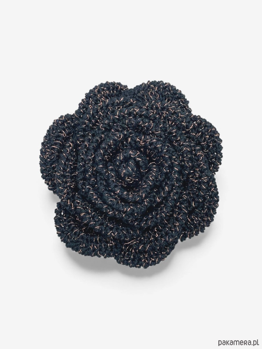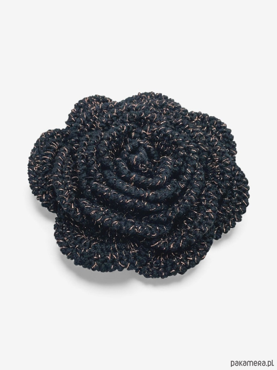 Broszka róża XL - czarna z miedzianą błyszczącą nitką