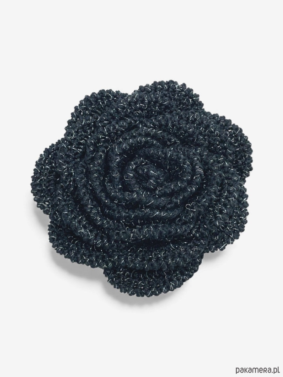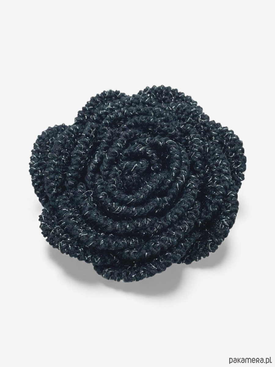 Broszka róża XL - czarna ze srebrną błyszczącą nitką