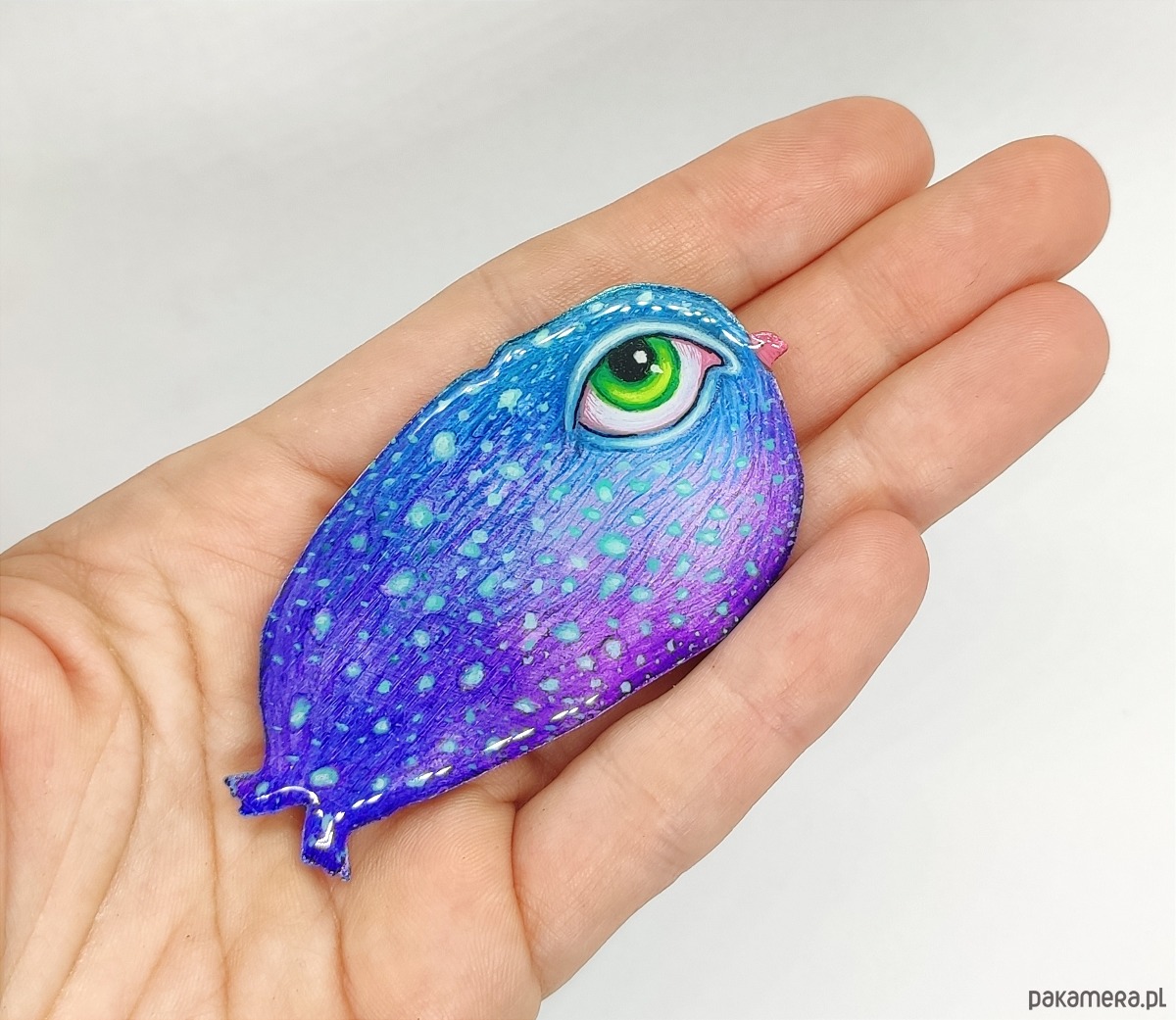 Broszka z drewna , ręcznie malowana, zabezpieczona żywicą, wielkość około 7 cm