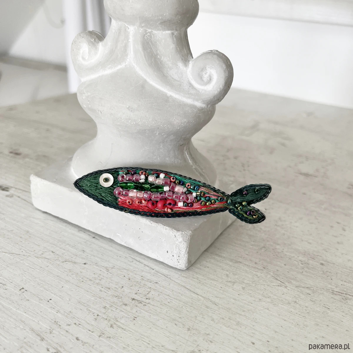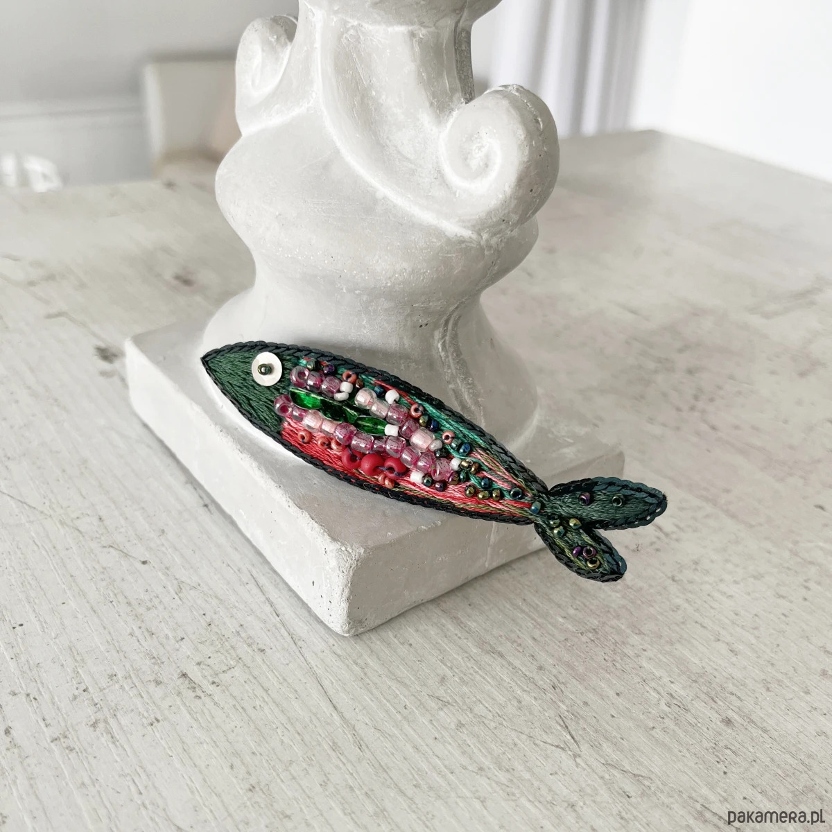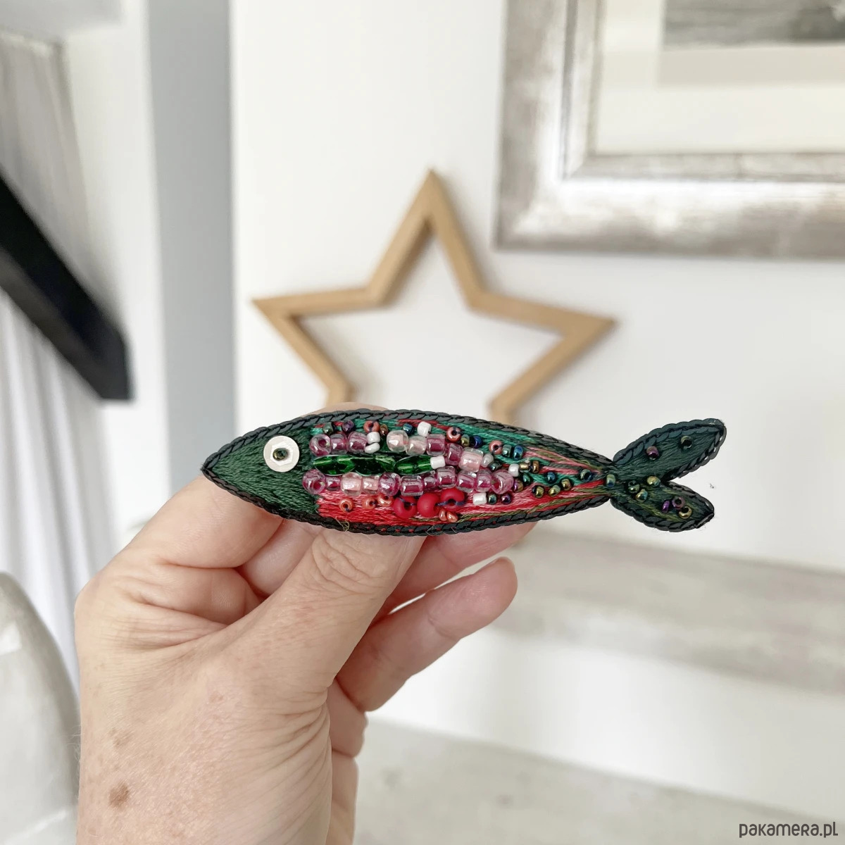 Przedstawiam wyjątkową, ręcznie haftowaną broszkę z serii RYBKI.