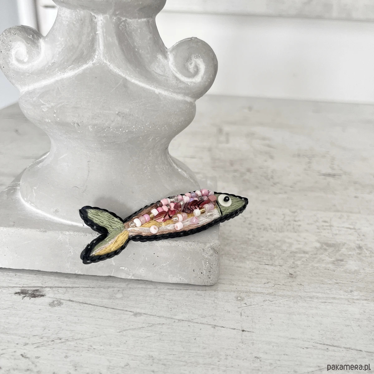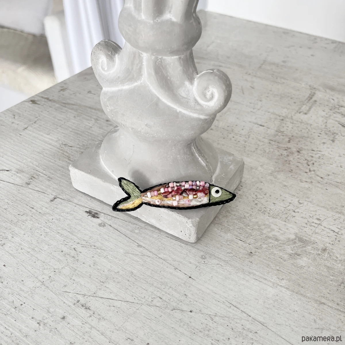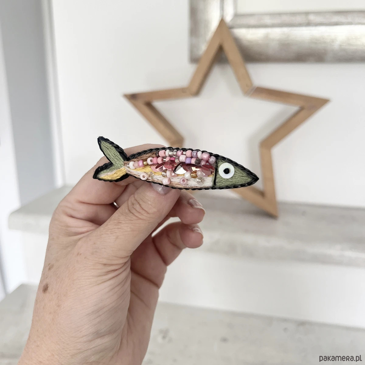 Przedstawiam wyjątkową, ręcznie haftowaną broszkę z serii RYBKI.