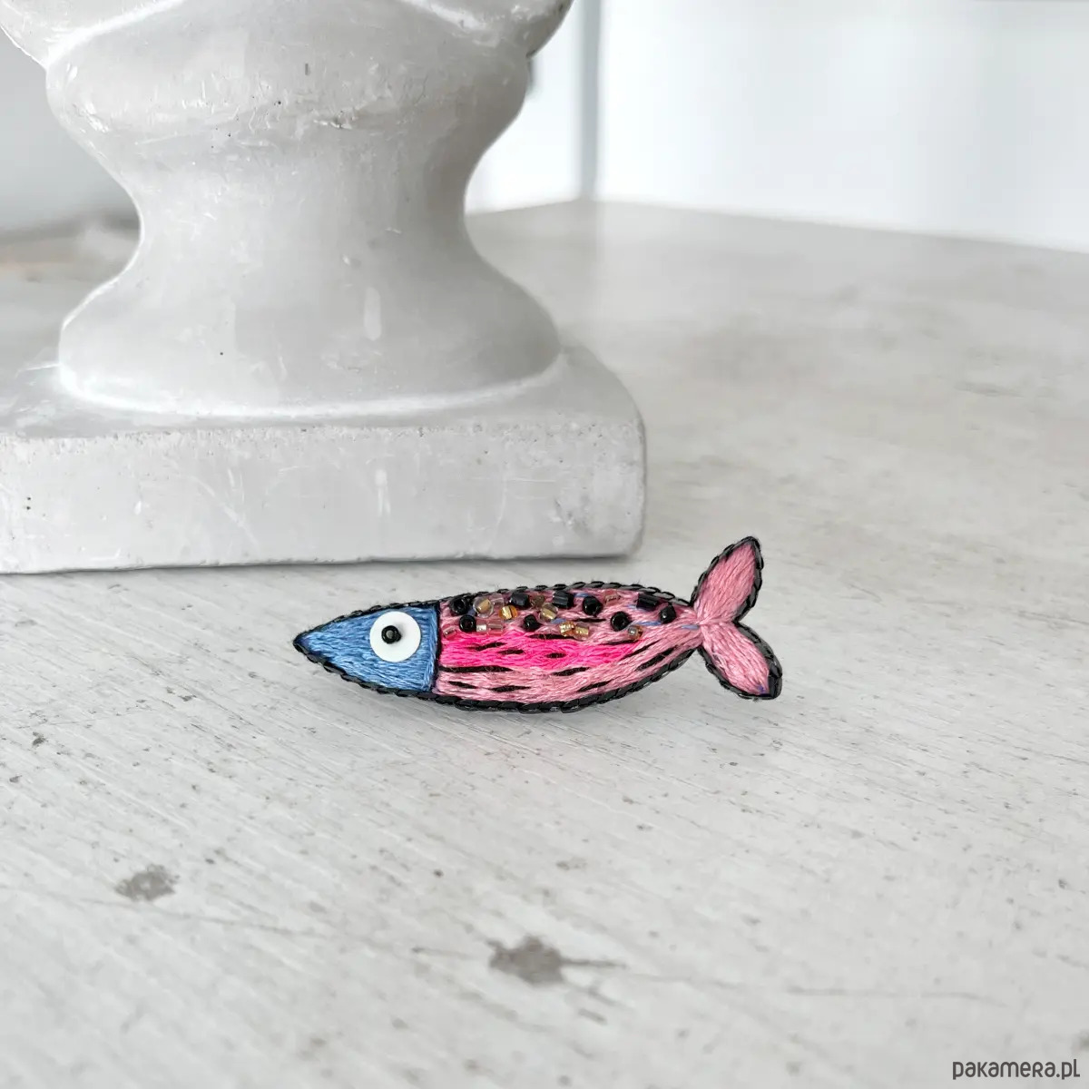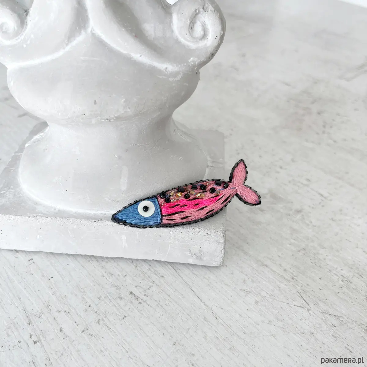 Przedstawiam wyjątkową, ręcznie haftowaną broszkę z serii RYBKI.