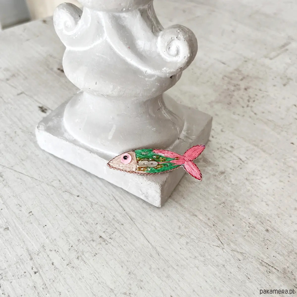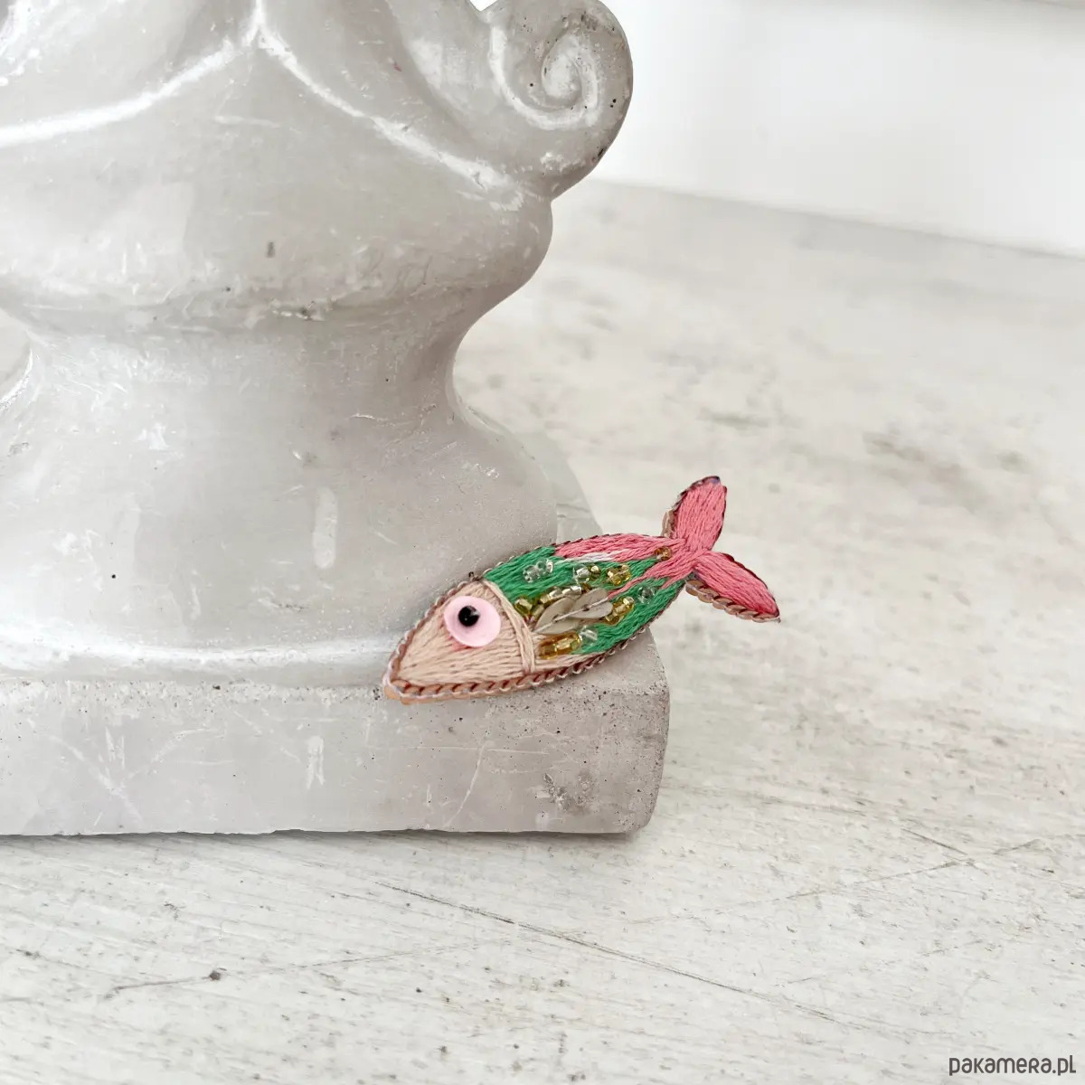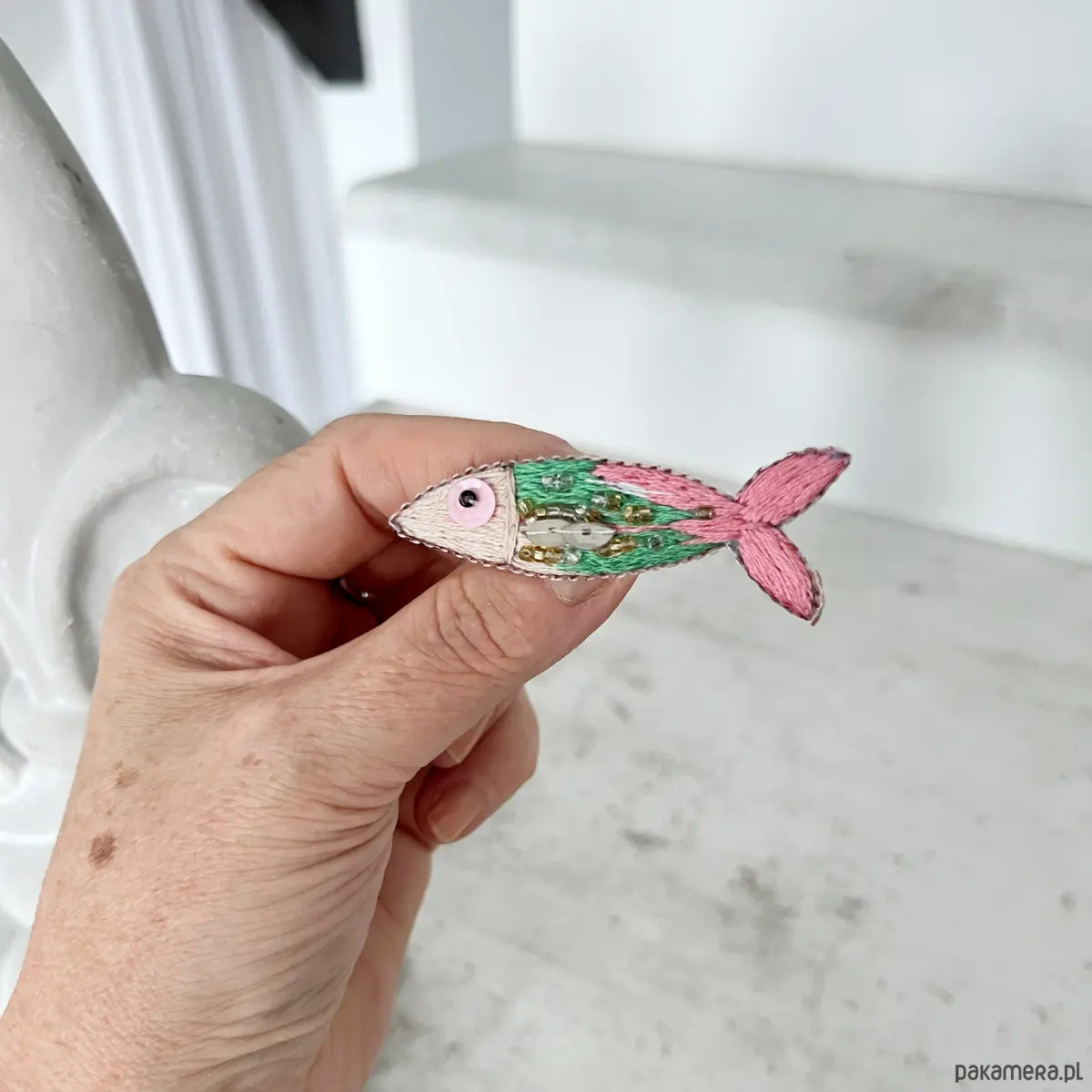 Przedstawiam wyjątkową, ręcznie haftowaną broszkę z serii RYBKI.