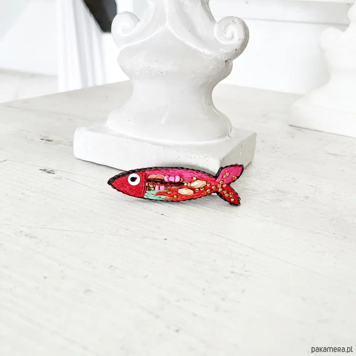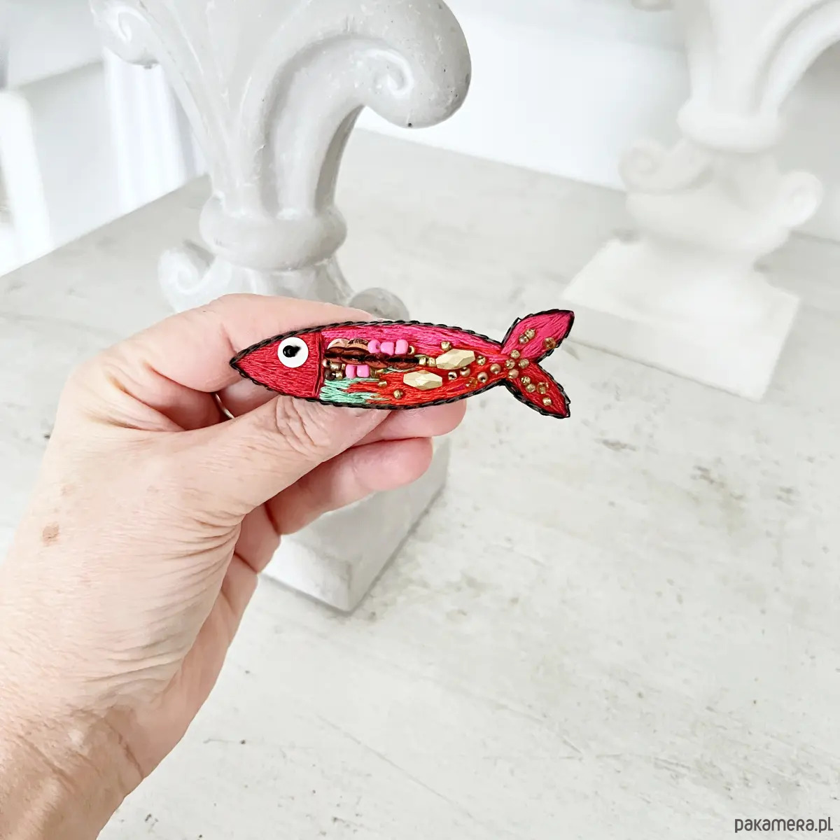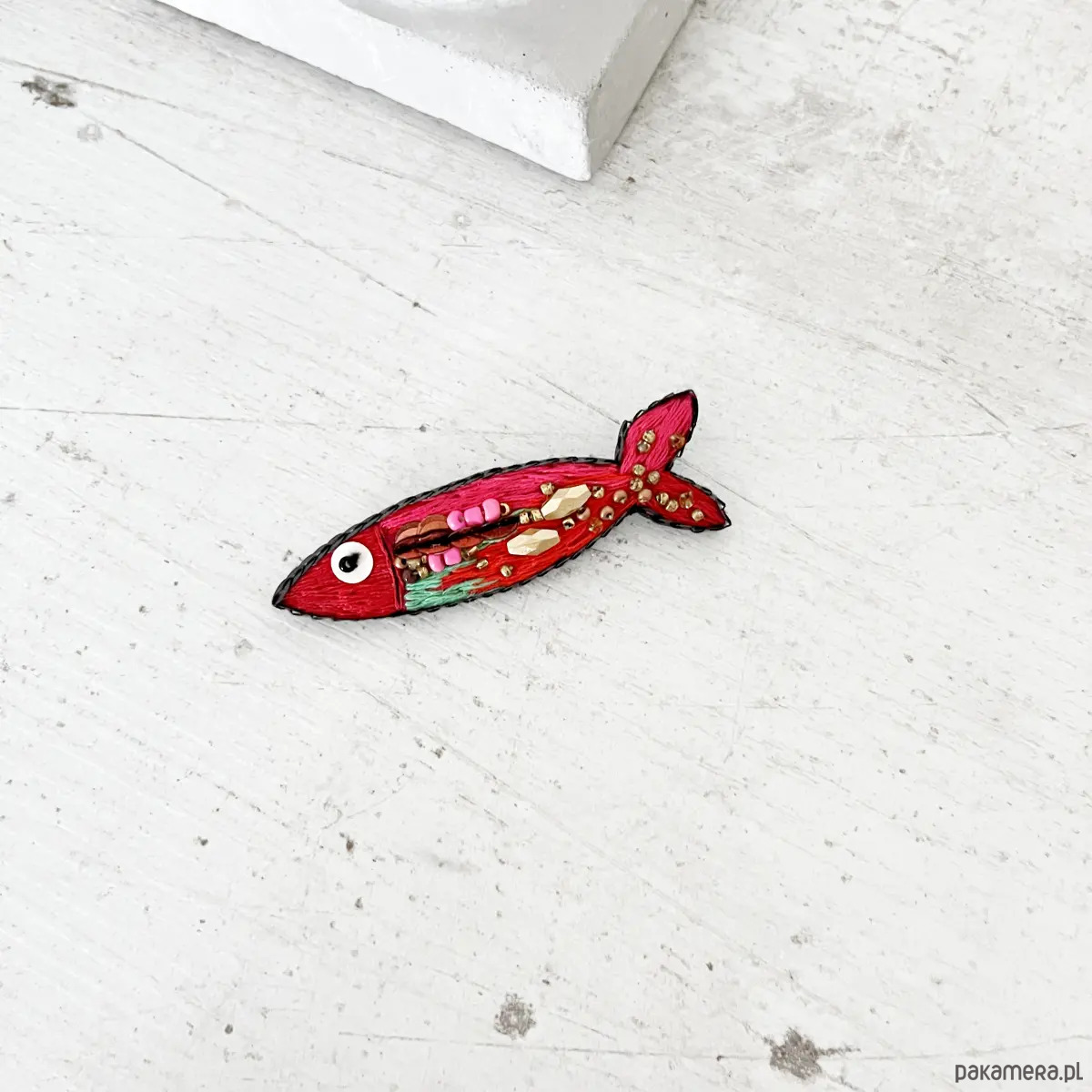 Przedstawiam wyjątkową, ręcznie haftowaną broszkę z serii RYBKI.