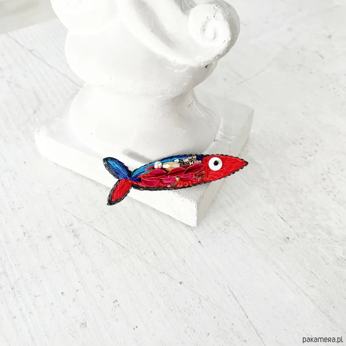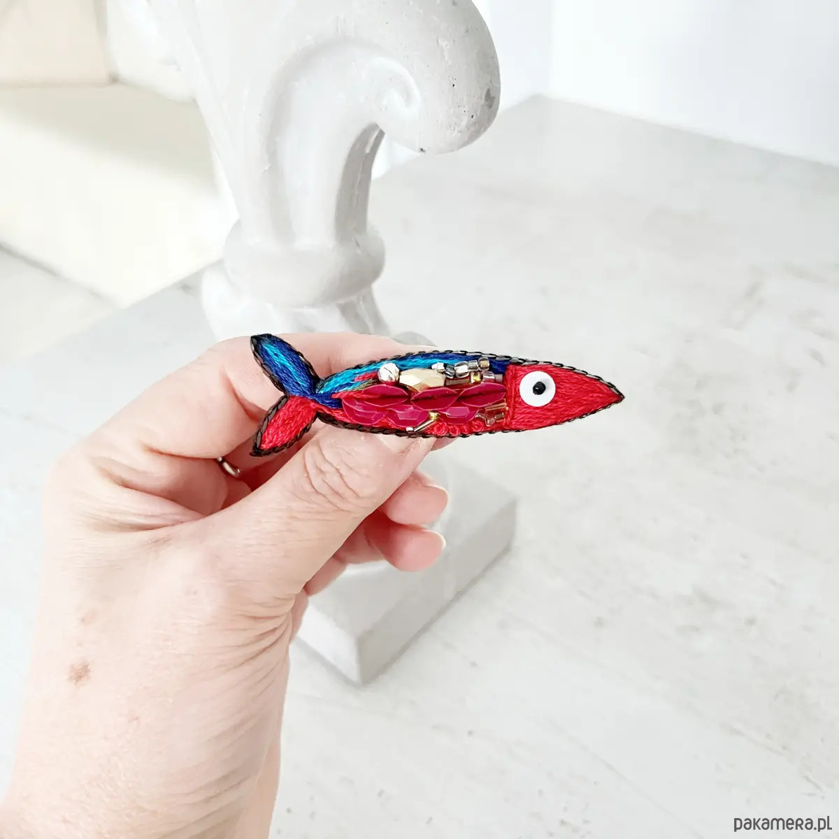 Przedstawiam wyjątkową, ręcznie haftowaną broszkę z serii RYBKI.