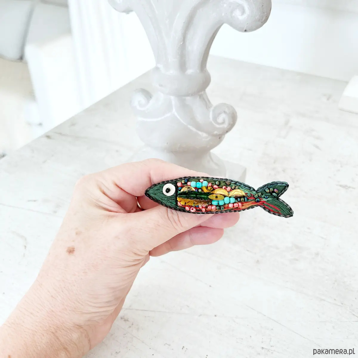 Przedstawiam wyjątkową, ręcznie haftowaną broszkę z serii RYBKI.