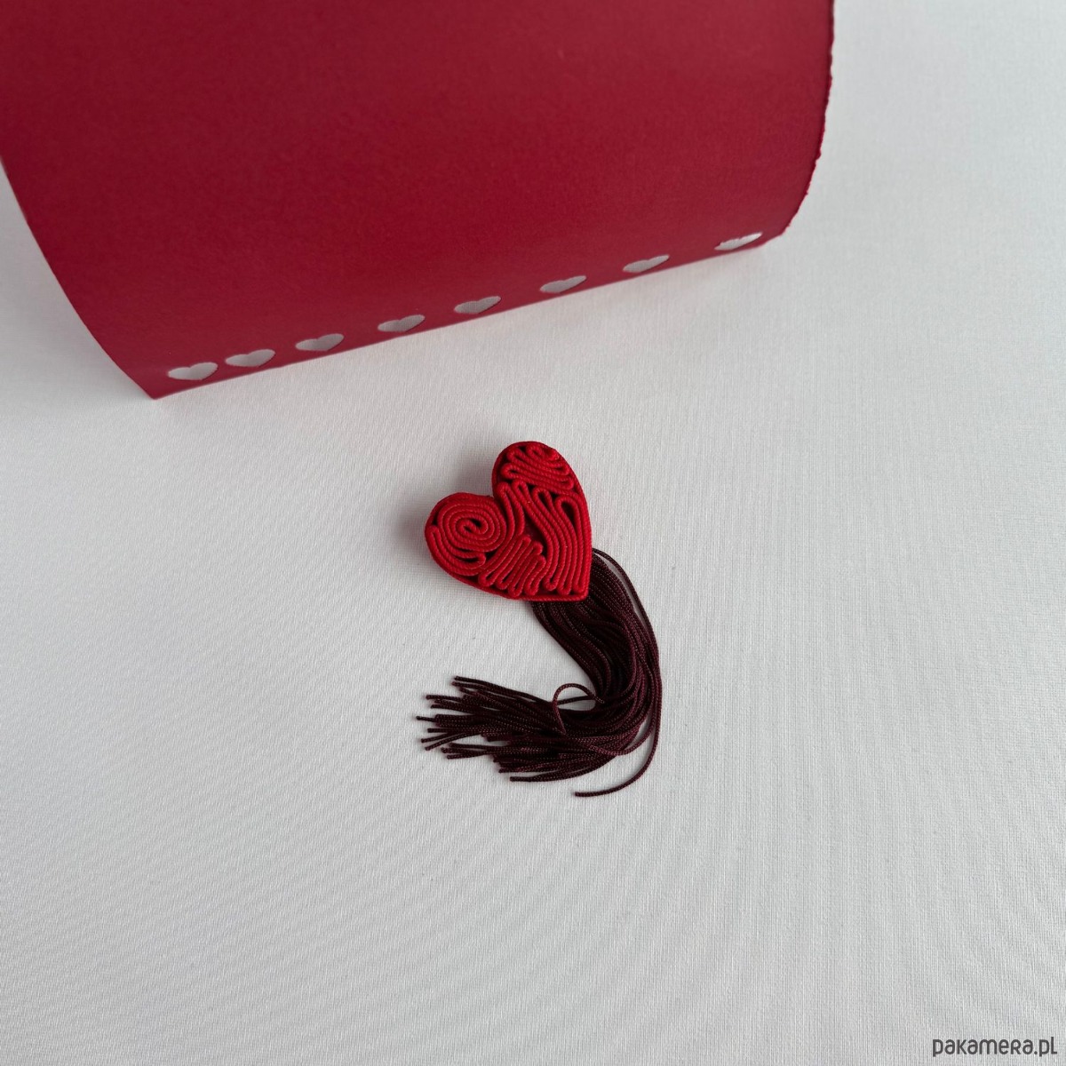 *Broszka w kształcie serca jest wyjątkowo lekka i ręcznie szyta metodą haftu sutaszowego z polskiego sznurka sutasz.
