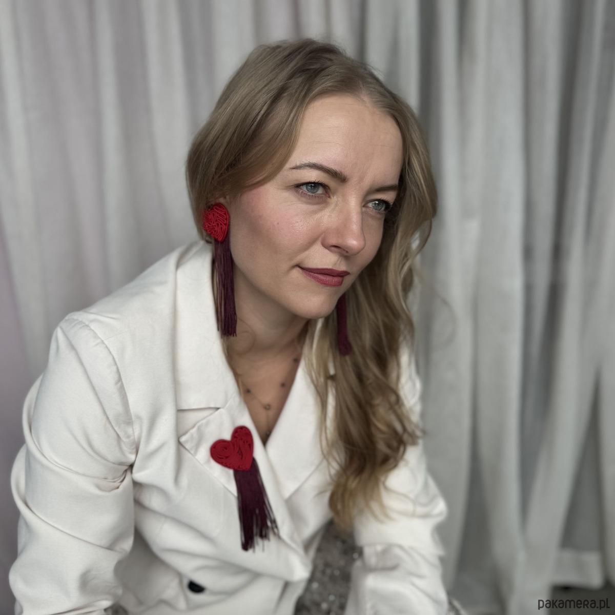 Kolekcja Cuore powstała z potrzeby tworzenia biżuterii, która niesie znaczenie — bo wszystko, co najważniejsze, zaczyna się w sercu. To symbol odwagi do bycia sobą, podążania za intuicją i wybierania tego, co naprawdę Twoje. Każda broszka została wykonana ręcznie techniką haftu sutaszowego z wysokiej jakości polskiego sznurka. Nie ma dwóch identycznych serc — układ splotów nigdy się nie powtarza, tak jak niepowtarzalne są kobiety, które je noszą. To biżuteria zaprojektowana z myślą o komforcie. Jest bardzo lekka, nie obciąża ubrań i dobrze układa się na tkaninie, dzięki czemu możesz nosić ją przez cały dzień — bez względu na to, czy przypniesz ją do koszuli, marynarki, swetra czy sukienki.
