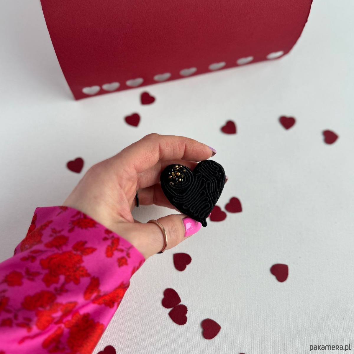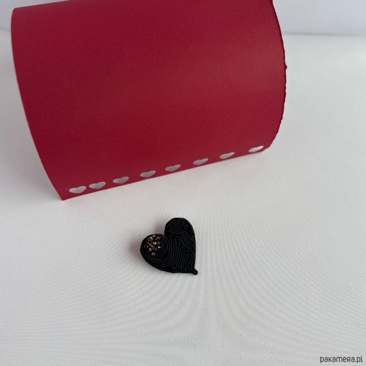 *Broszka serce jest wyjątkowo lekka i ręcznie szyta metodą haftu sutaszowego z polskiego sznurka sutasz.