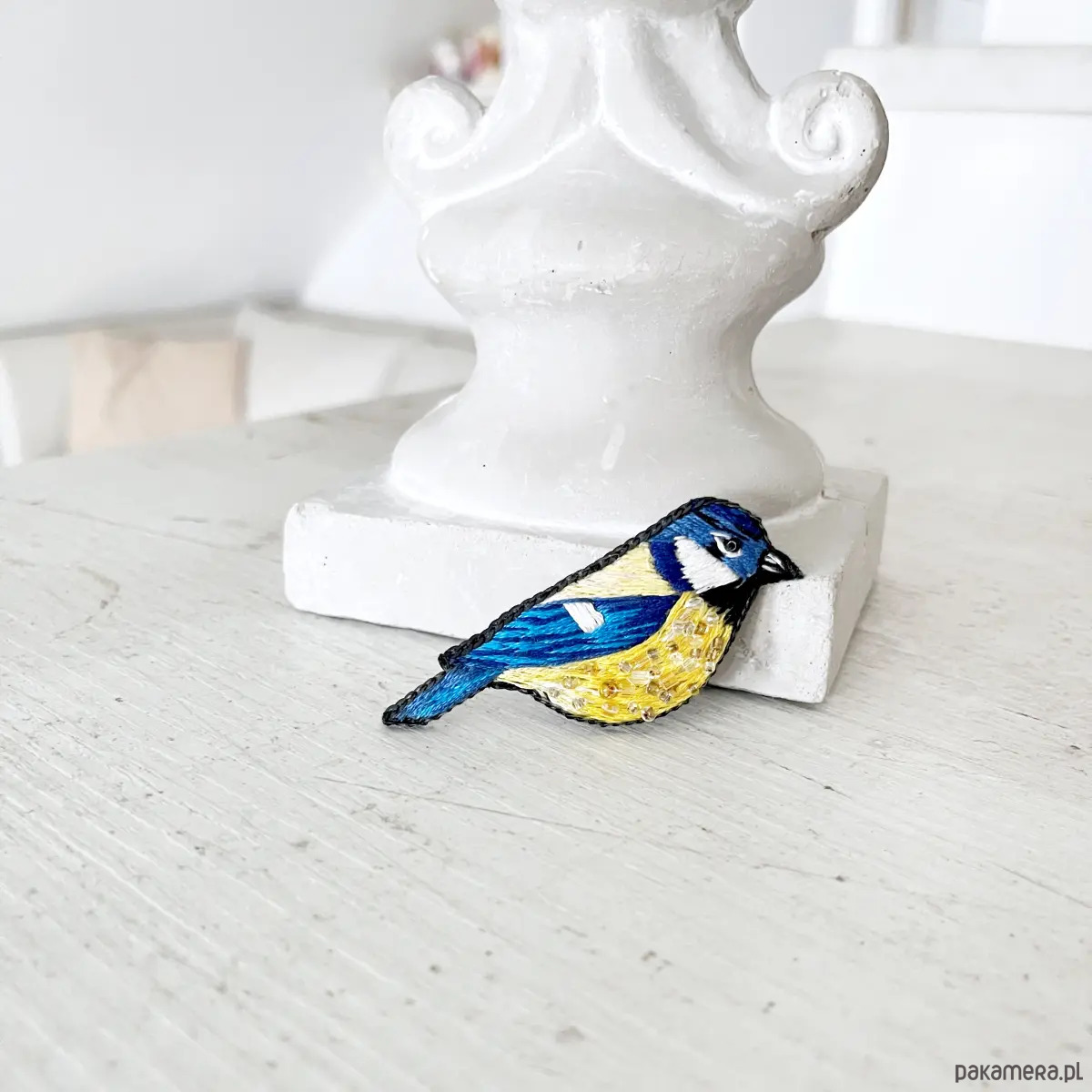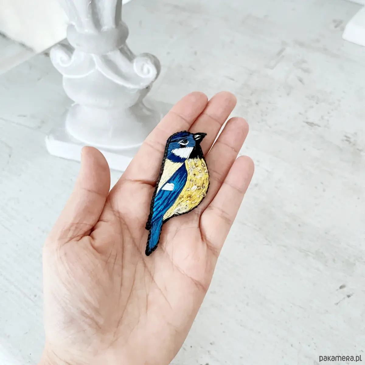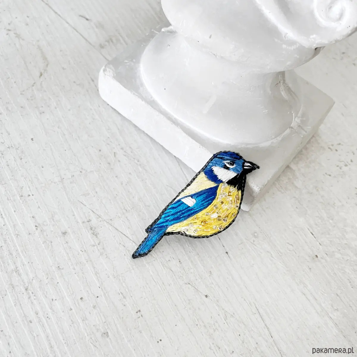 Broszka SIKORKA 4 ręcznie haftowana przypinka polskie ptaki