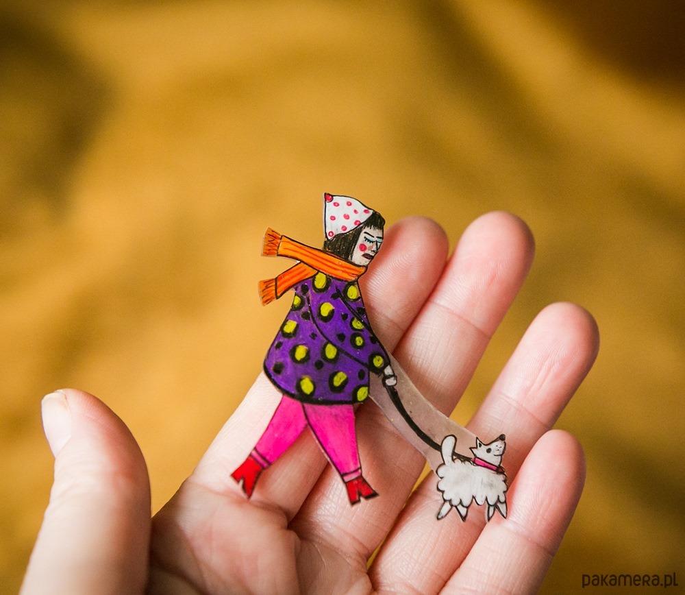 Wprowadź odrobinę ciepła i uroku do swojej garderoby z tą ręcznie rysowaną broszką przedstawiającą dziewczynę na spacerze ze swoim wiernym pieskiem!