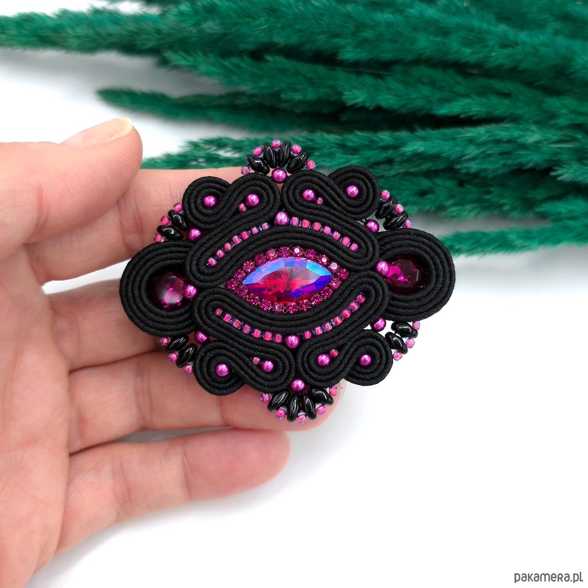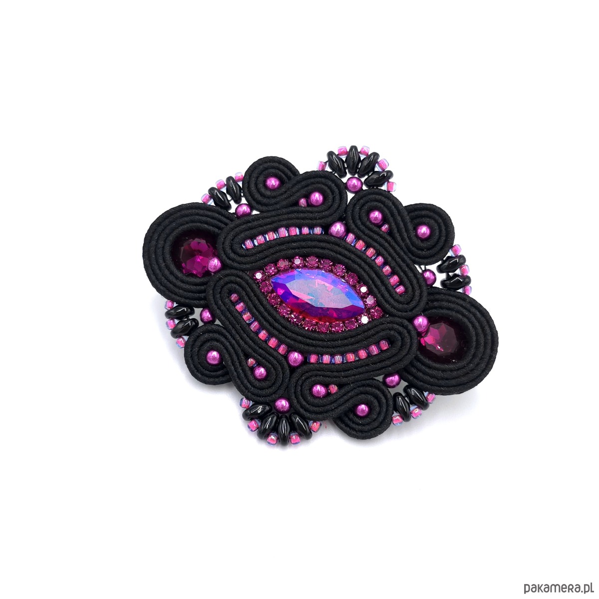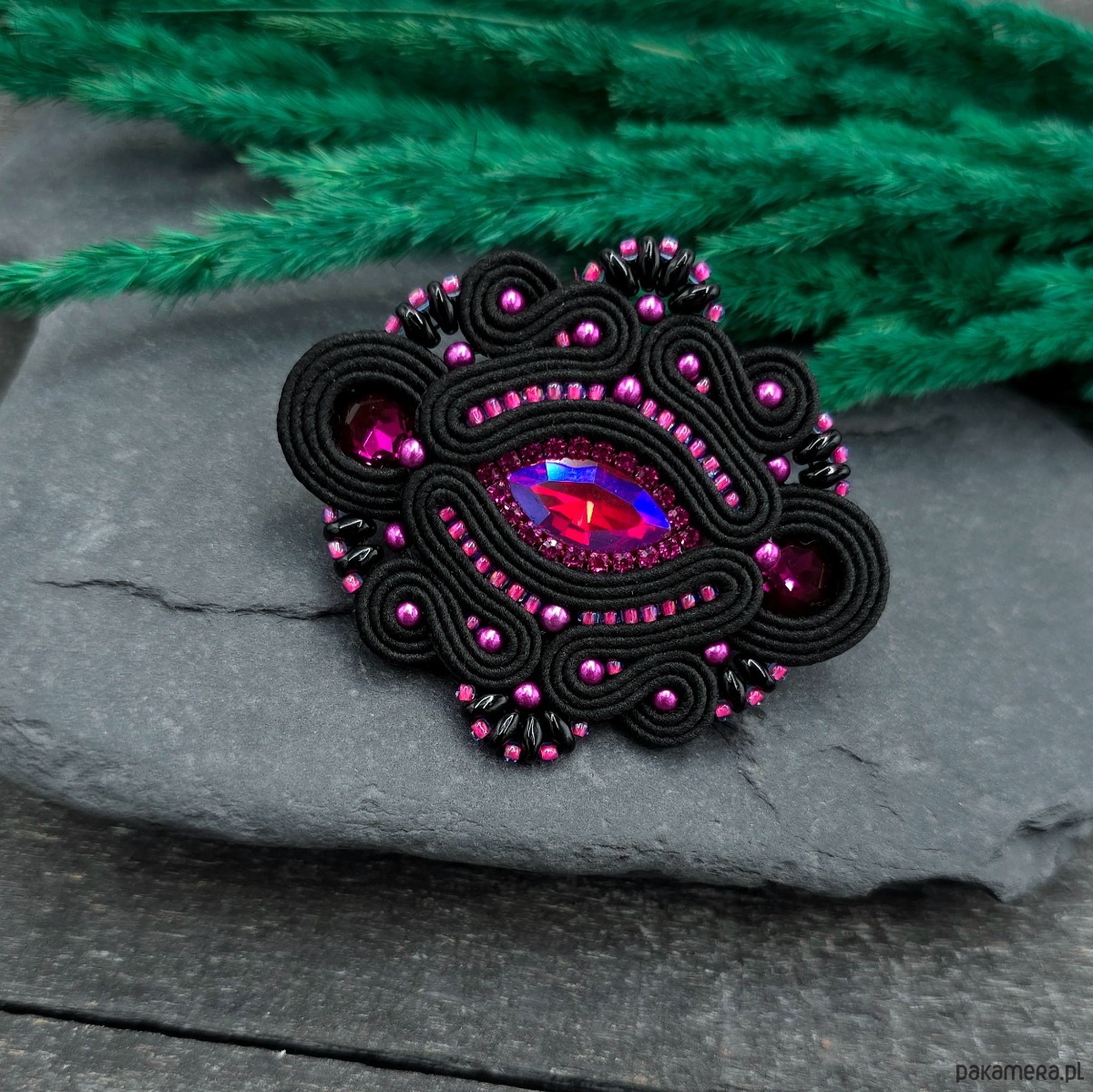 Broszka sutasz fuksjowo czarna Loria klasyczna wieczorowa elegancka