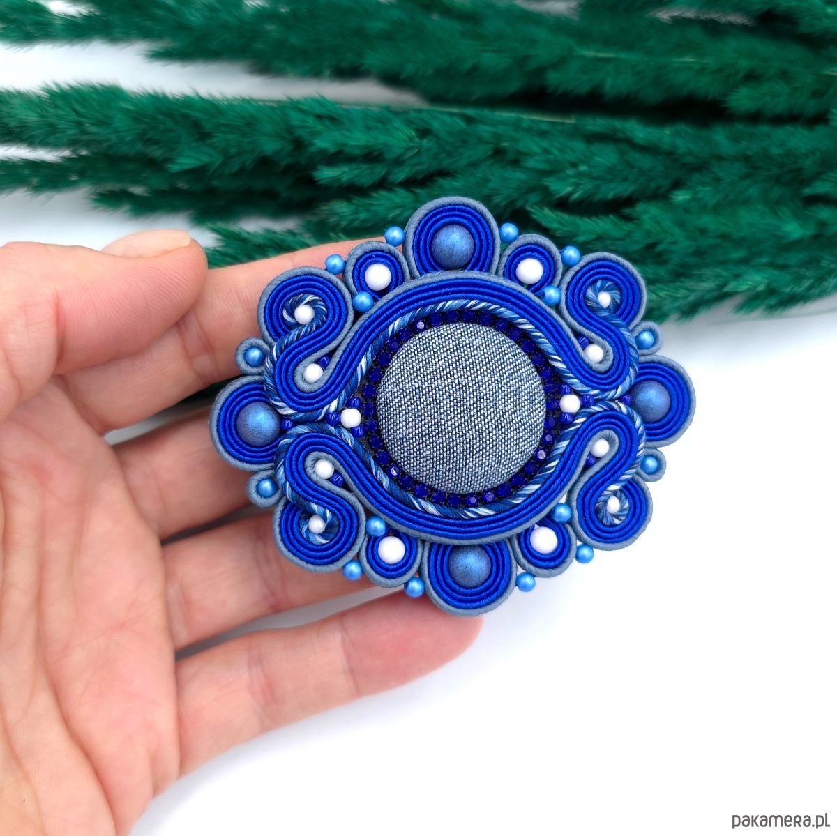 Broszka sutasz w odcieniach niebieskiego ma w sobie mnóstwo uroku.