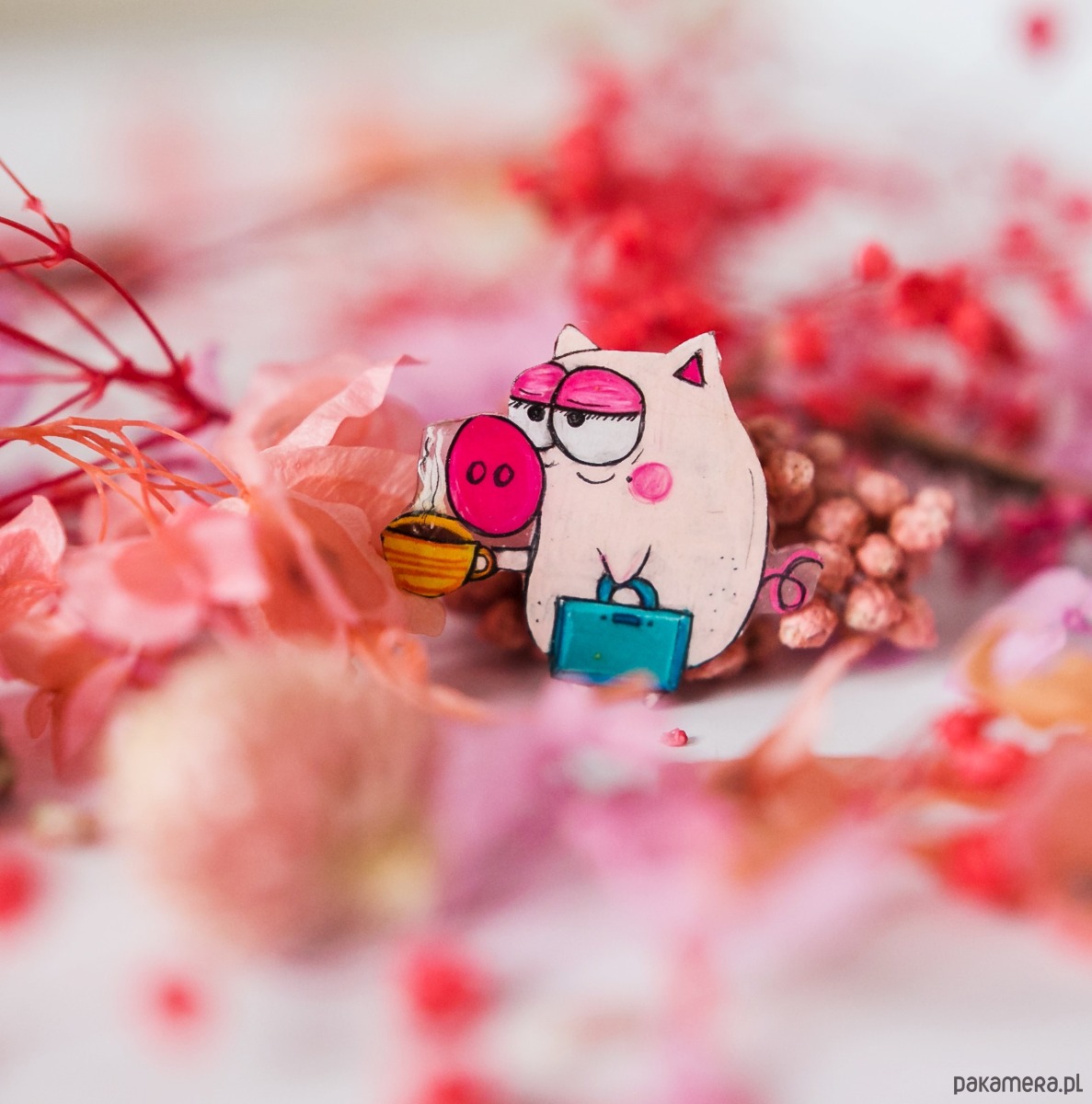 Broszka została ręcznie narysowana, dzięki czemu każda jest niepowtarzalna.