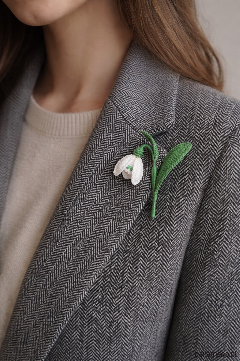 Mały znak wiosny, który można przypiąć do płaszcza, swetra, torby lub plecaka.