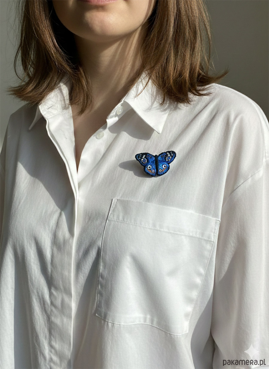 Są takie dodatki, które opowiadają historię. Ten motyl to owoc godzin spędzonych z igłą w ręku, gdzie każdy ruch nitki miał jeden cel: uchwycić ulotność i lekkość natury w formie, która może towarzyszyć Ci na co dzień.