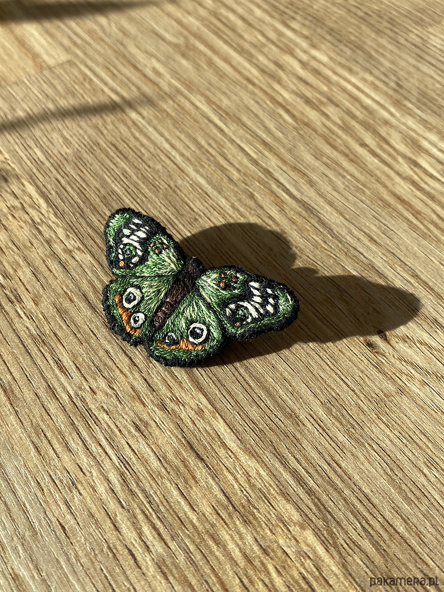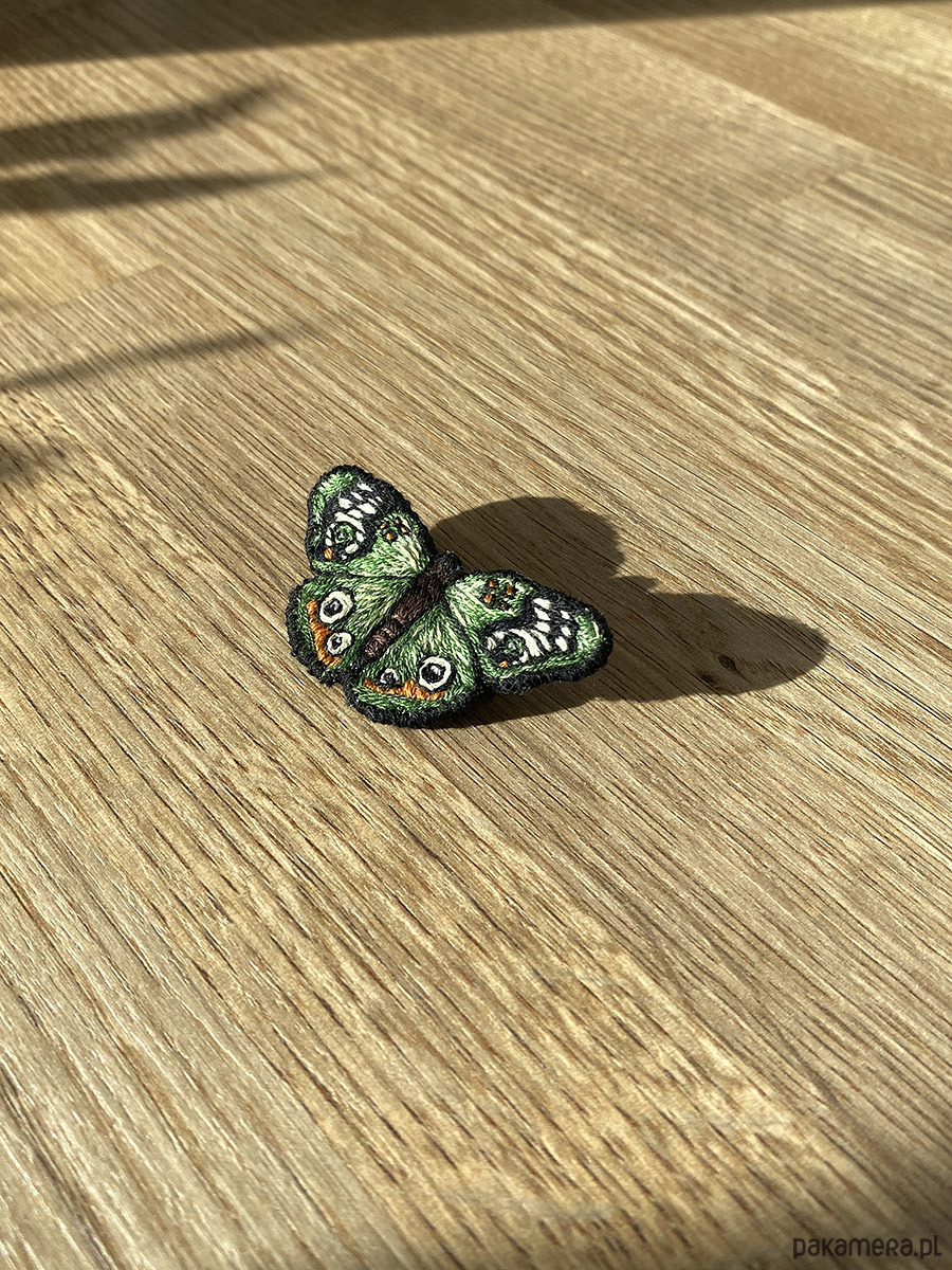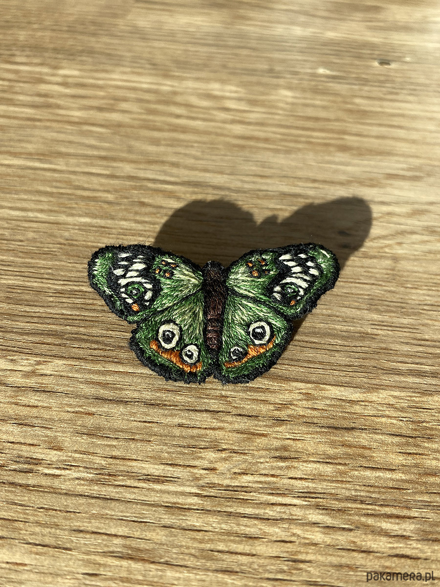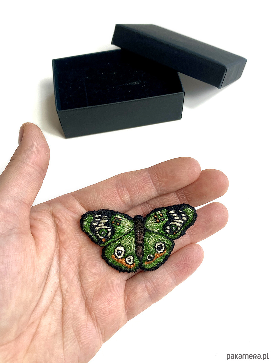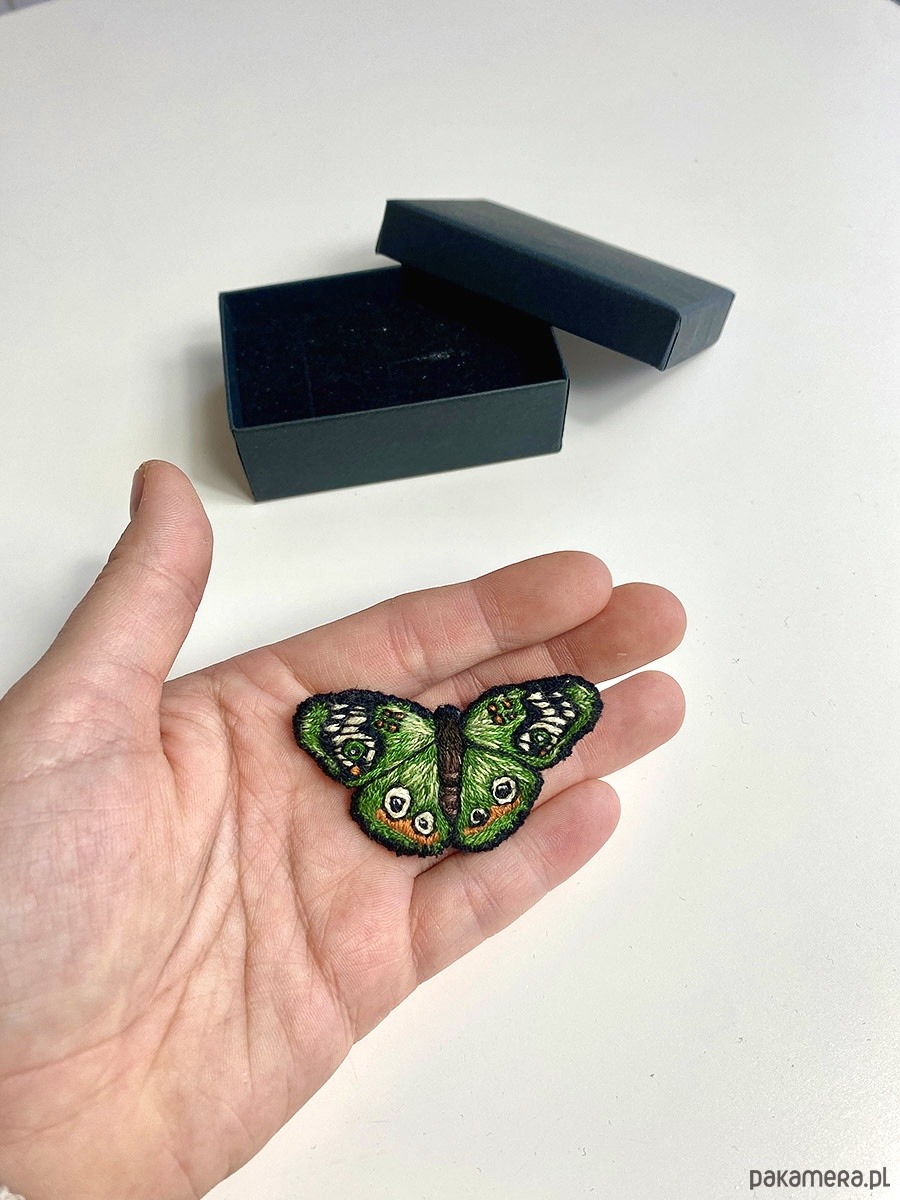 Broszka UNIKAT - ręcznie haftowany, zielony motyl