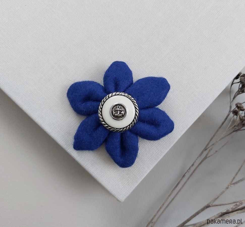 Broszka w stylu marynarskim - kobaltowy kwiat