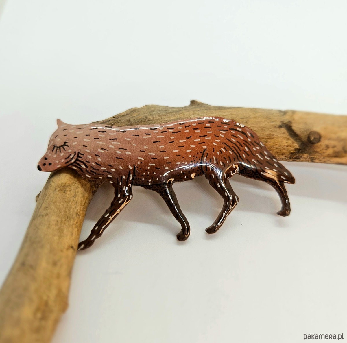 z drewna , ręcznie malowana, zalana żywicą, wielkość około 7 cm