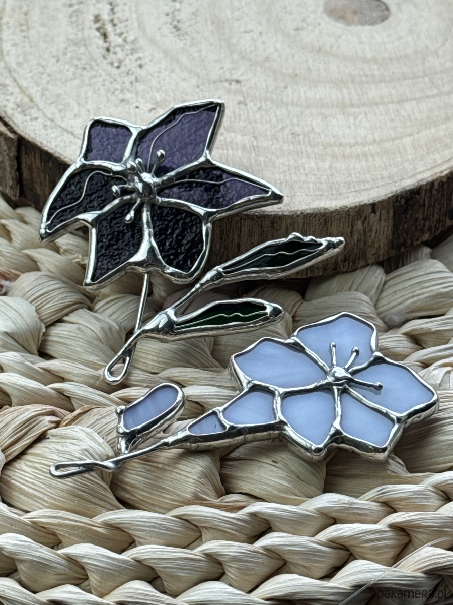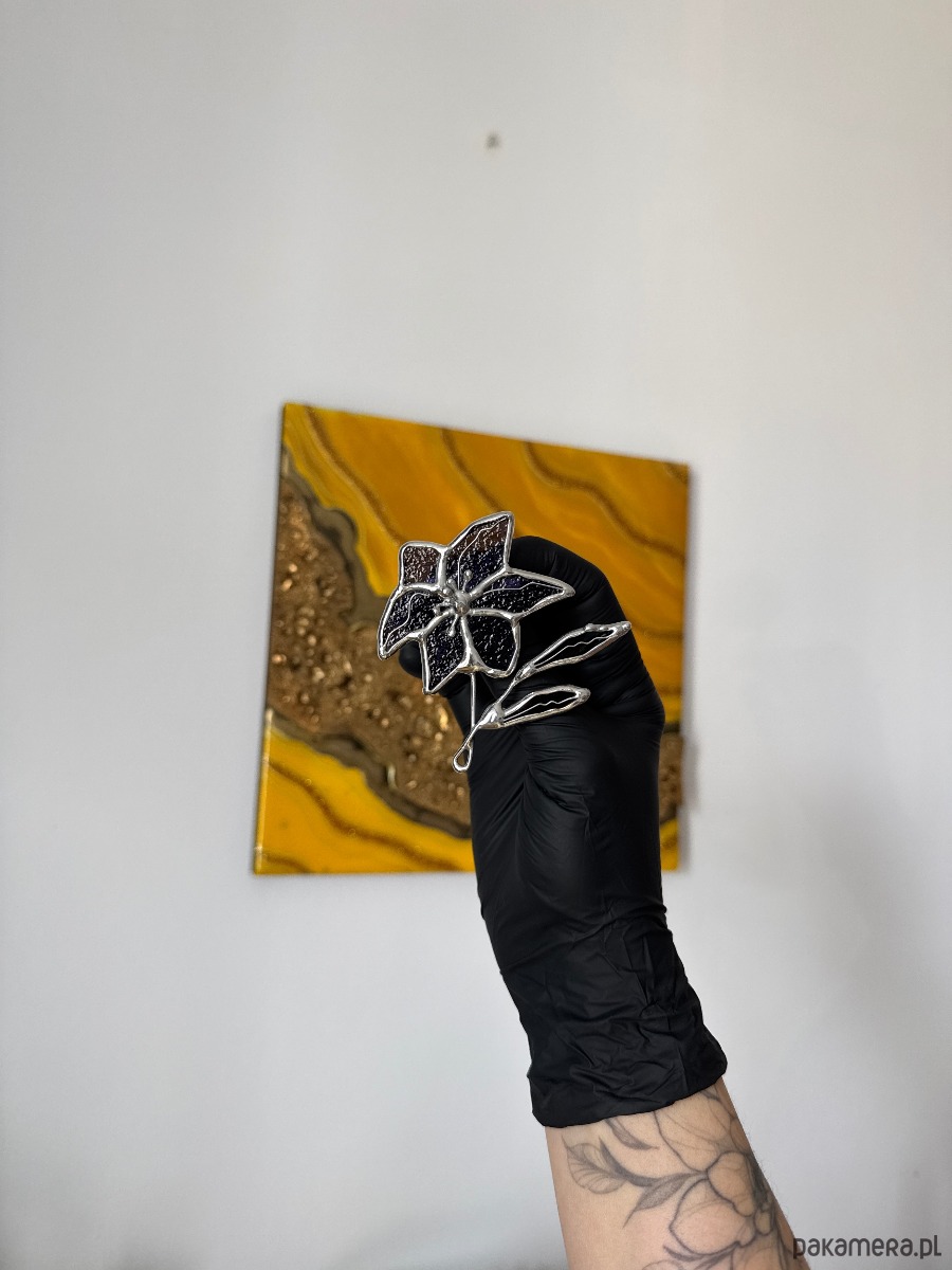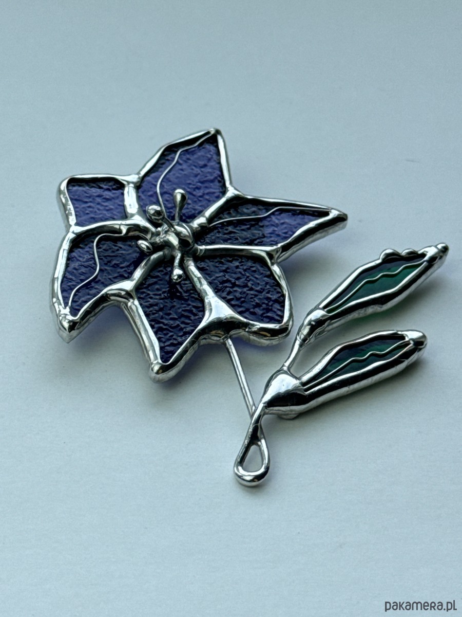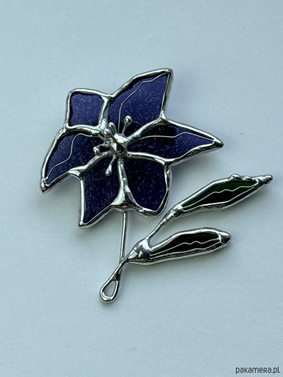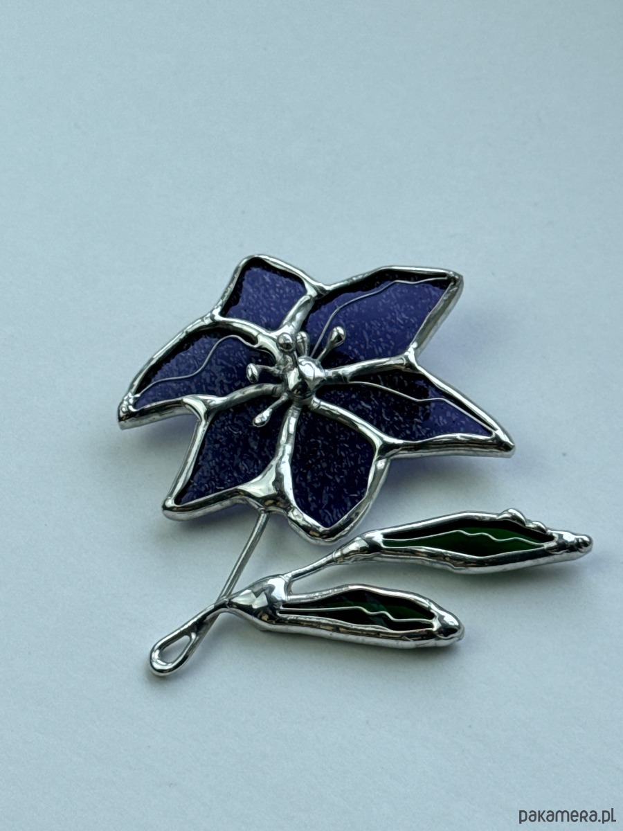 Broszka witrażowa Kwiat Clematis Witraż Tiffany