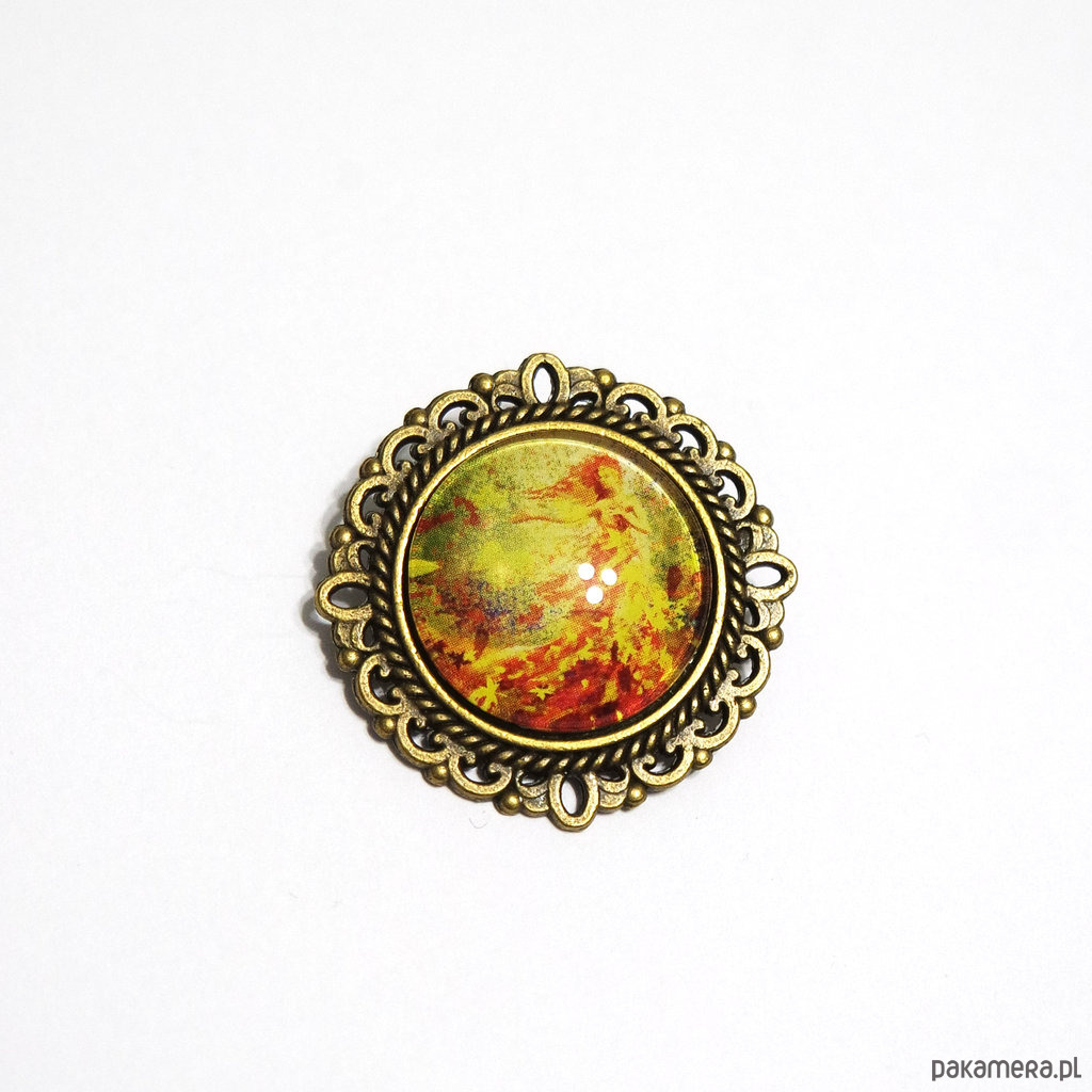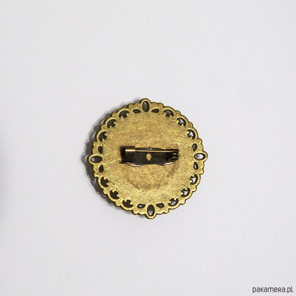 Oryginalna broszka w zdobionej oprawie z naszą autorską grafiką.
